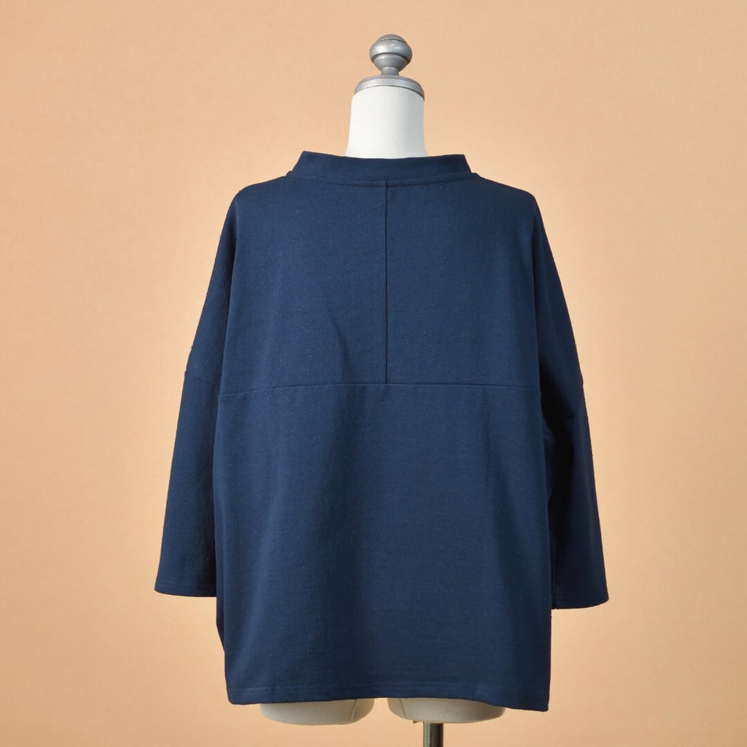 【商品詳細】少し厚手でネップを編み込んだ生地が使われています。リネンヤの人気シリーズのカットソーで色々なスタイルにサッと着て形になります。襟裳のとのスタンドカラーも人気の一つです。
