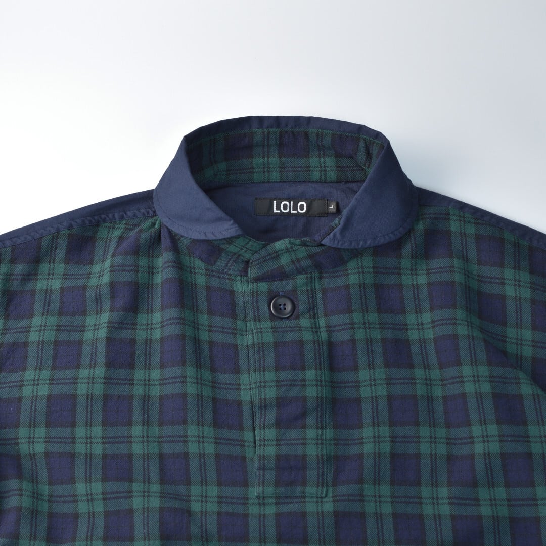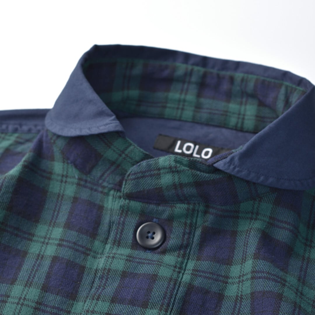 LOLO ロロ コンビネーションチェックシャツ・グリーン【メンズ】いつものプルオーバーシャツをバージョンアップしてください。【送料無料】