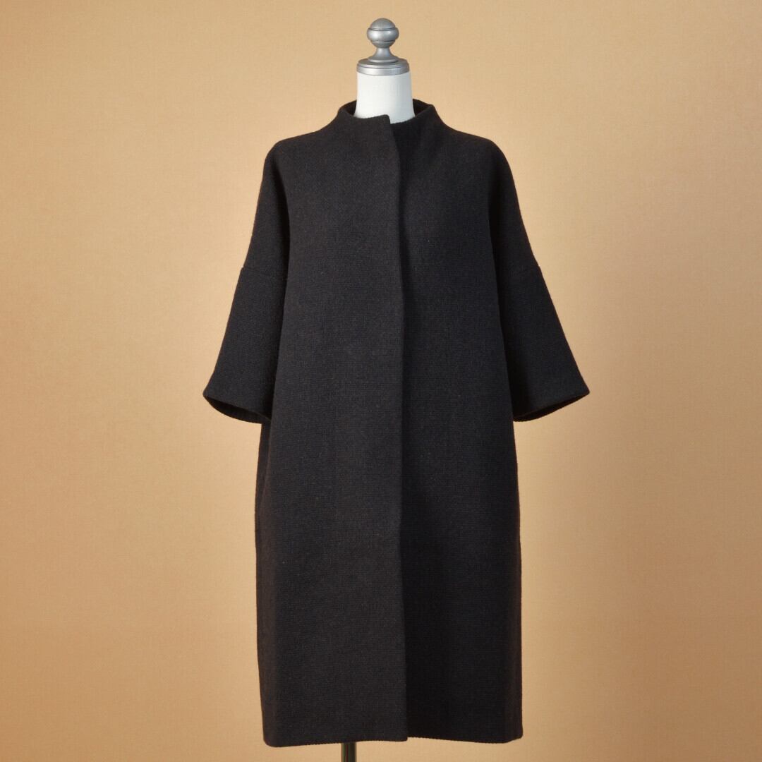 【商品詳細】evam evaのウールツイードコート。異なる太さの糸を使い、奥行きと立体感を感じられる装飾的な織柄が特徴です。素朴な印象ながらも、とても柔らかな風合いがあり、着心地も抜群です。首もとが少し立ち上がったハイネックがすっきりと上品な印象を与えます。寒い季節にも防寒効果があり、おしゃれにプラスして、暖かさも提供します。さらに、着こなしの幅も広がるチャコールカラーをセレクトしました。シンプルなデザインで、幅広いスタイルに合わせることができます。上品なコートをお探しの方にぴったりの一着です。このウールツイードコートで、大人の魅力を引き出してみてください。