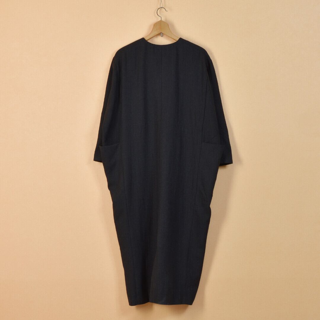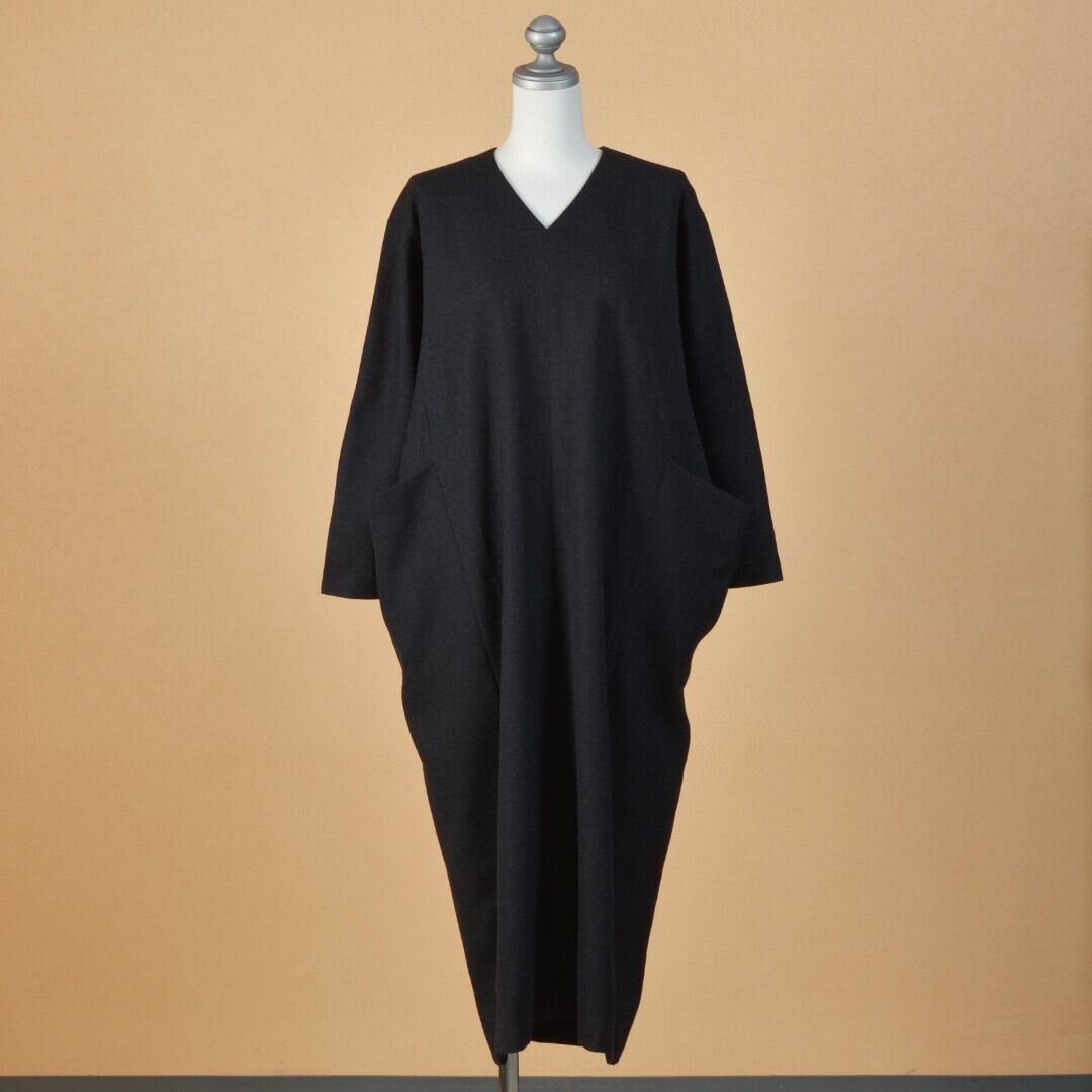 【商品詳細】毛羽立ちの少ないウールを使用した生地をしなやかさとふくらみの出るよう仕上げています。ウールのなめらかな風合いはそのままに、薄くてあたたかな生地は身にまとうと心地よさを感じます。上品な印象ながら、普段使いにも程よくリラックスして着られるワンピース。切替に施された大きめのポケットがゆったりとシルエットをつくります。