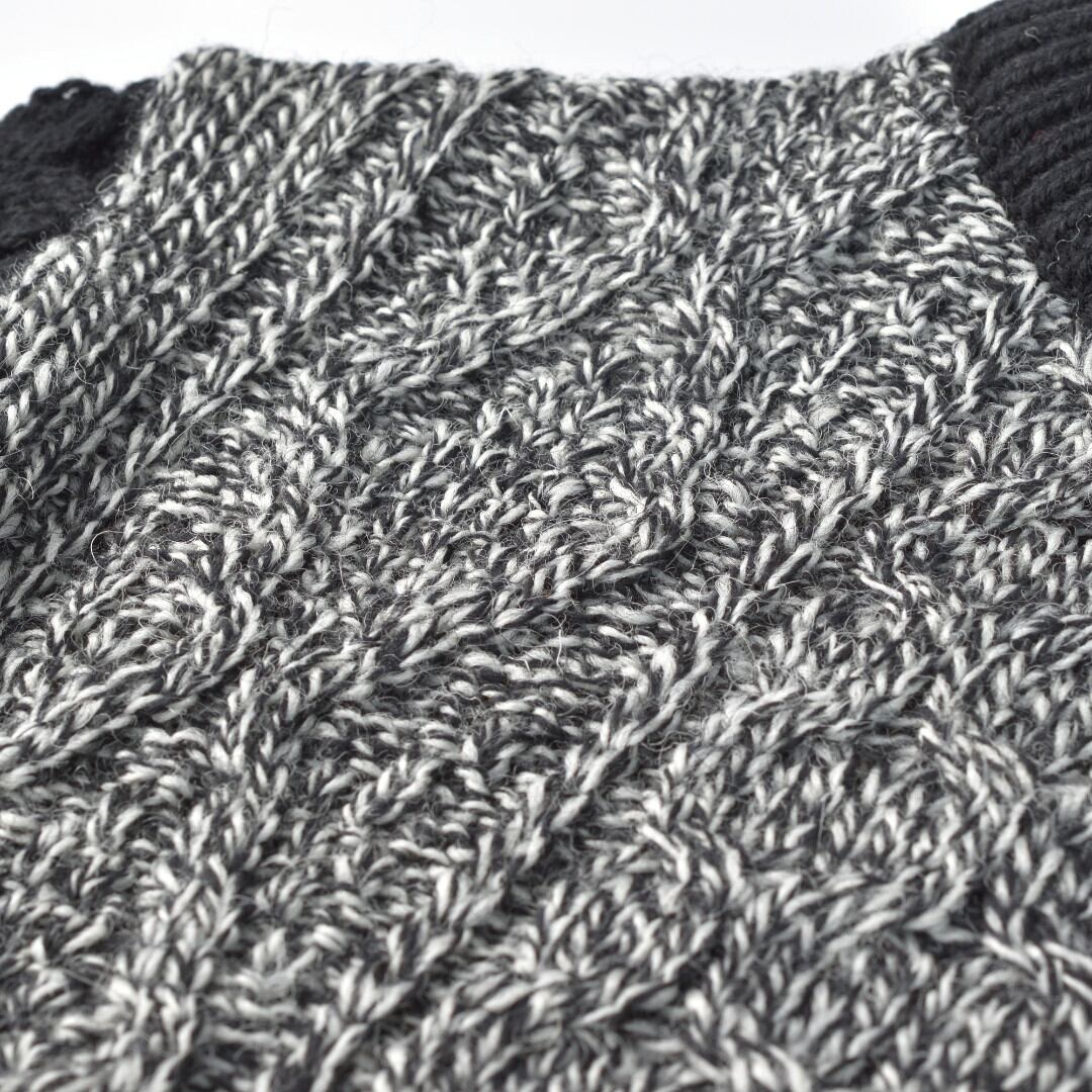 【商品詳細】英国羊毛を使ったシッカリとしたニットです。ブリティッシュウール特有のオイル感が特徴です。着るほどに柔らかく風合いが増してきます。デザインは袖と見頃の編地と色が変えてあるバイカラー。シンプル過ぎないので色々なボトムと合わせていただけます。コートとの重ね着も素敵ですね!