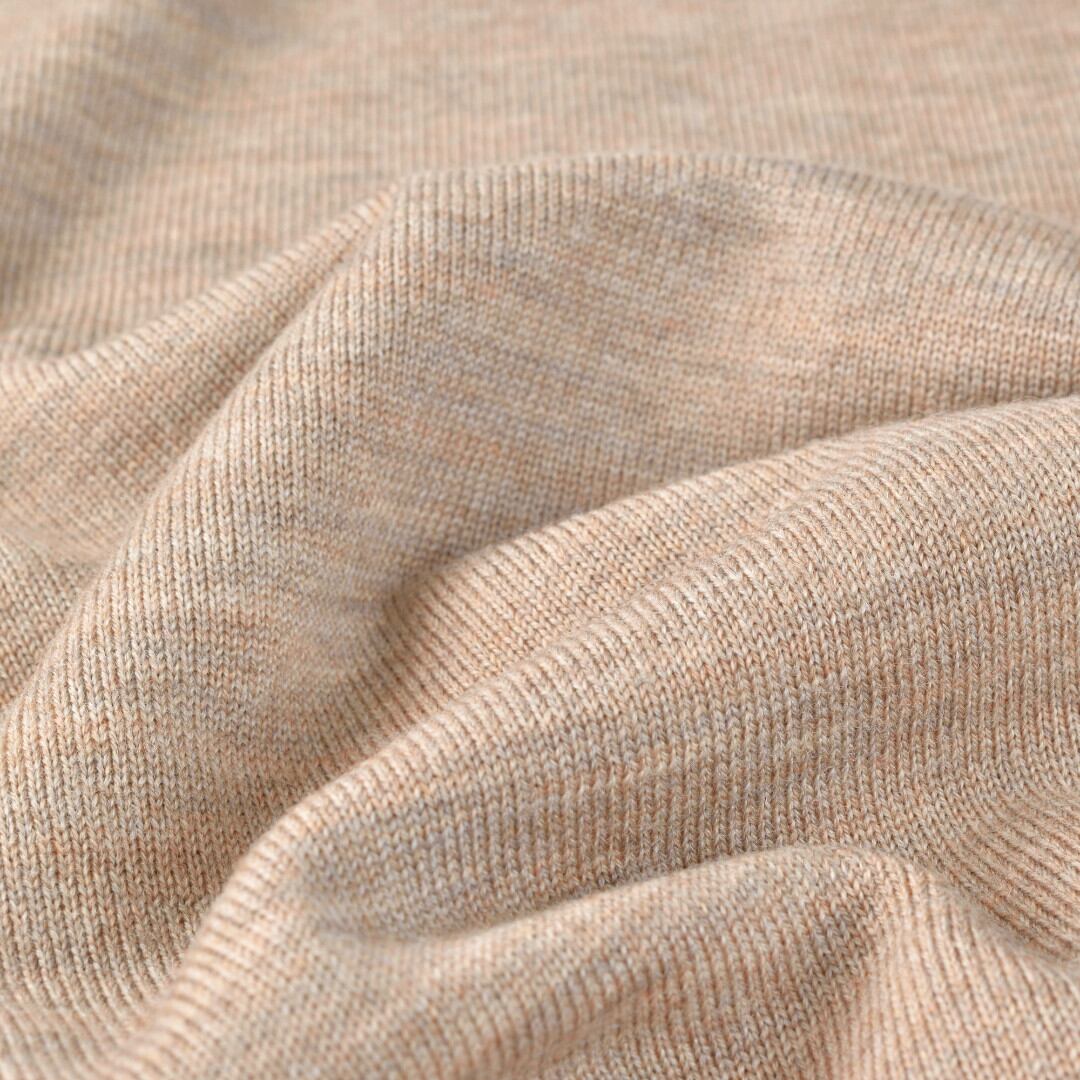 メリノウールは、繊維が細くしなやかで、耐久性や弾力が強く、数あるウールの中でも最上級と言われています。編み地は12Gの天竺編み。