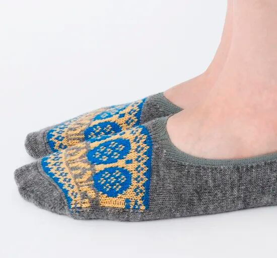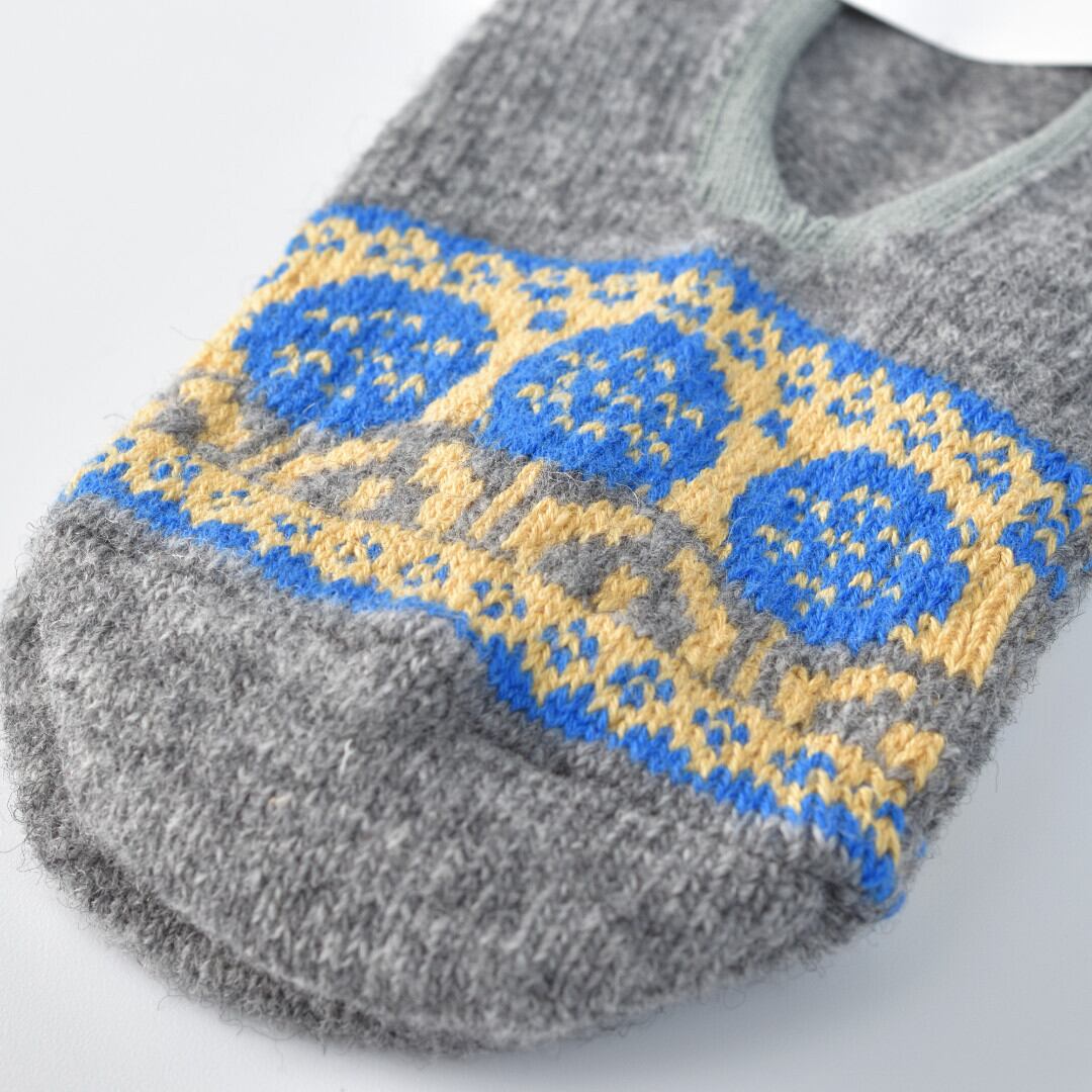 【商品詳細】ヒナギクをイメージした柄のカバーソックスです。履き口はゴムで編み立て、優しいフィット感と脱げにくさを両立させました。タイツなどに重ねて冷え対策や、ルームソックスとしても。贈り物にもおすすめです。