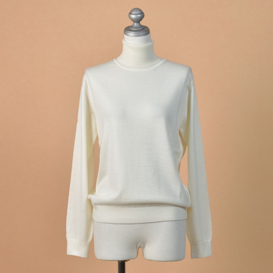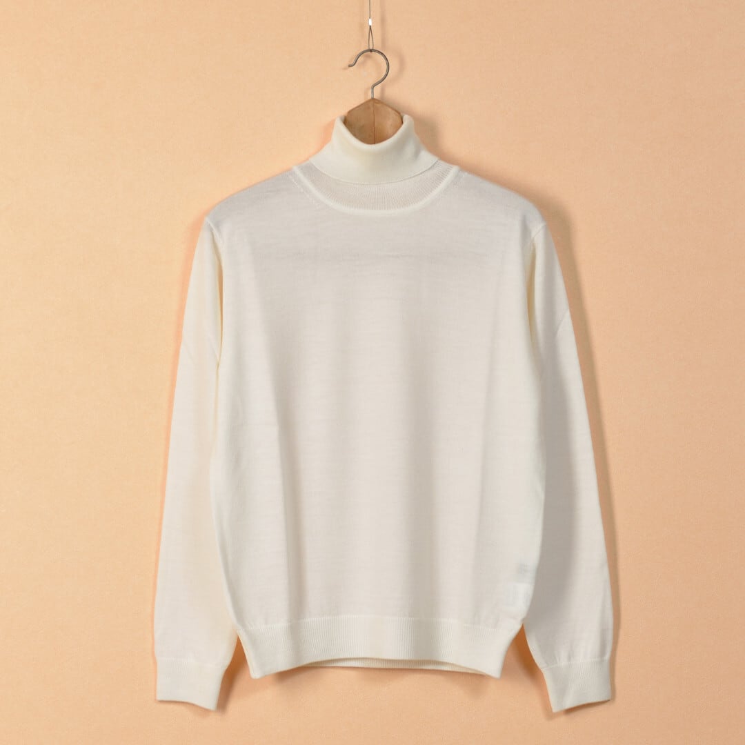 mooncastle ムーンキャッスル ウールタートルネックセーター・オフホワイト 滑らかなメリノウールを使ったニットです。