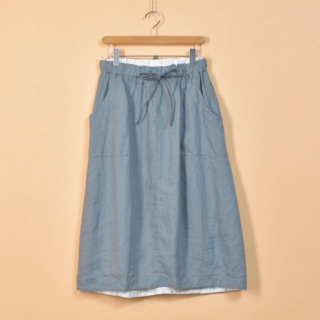 【商品詳細】いつものジャパンリネンを使ったカジュアルなスカートです。ソフトな肌触りと少し光沢の有るリネン生地は素材の良さが分かります。快晴堂らしく随所にデザインが施されているのも良いですね!