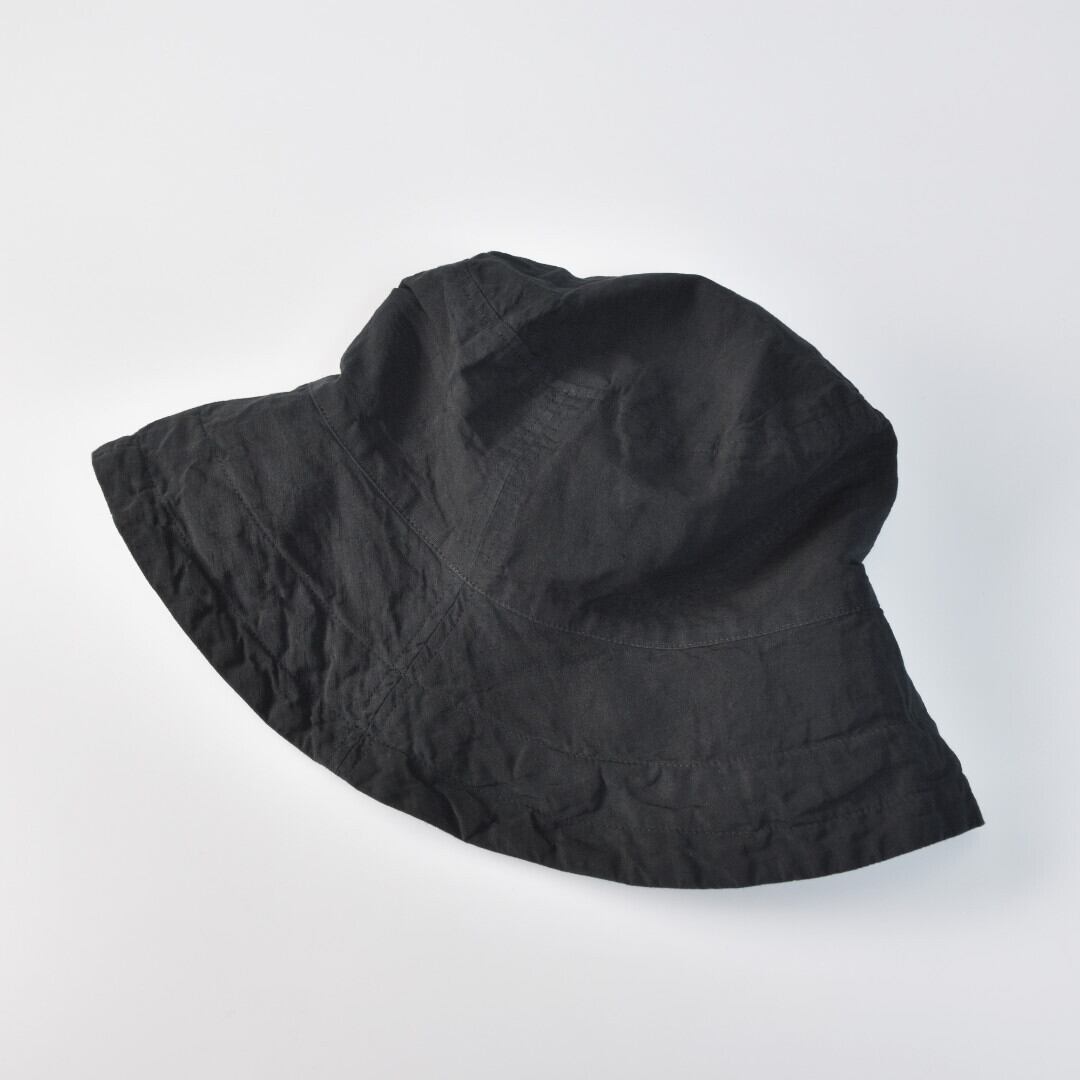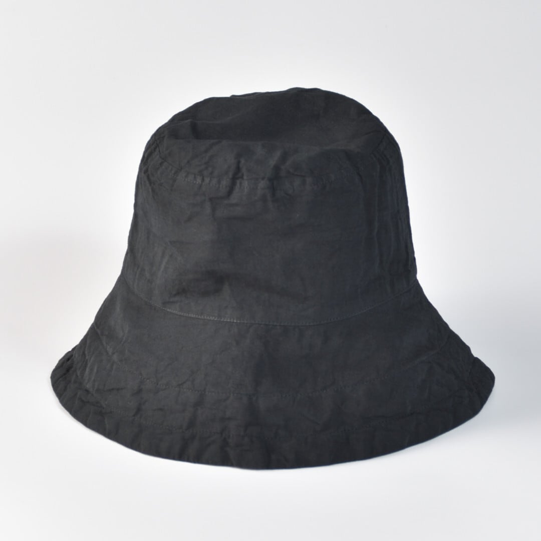【商品詳細】軽くてハリの有る高密度生地を使ったバケットハットです。少し広めのツバはお好みで折り返して形を作って頂けます。裏地を付けた縫製ですので、フワッとした風合いが保たれた雰囲気の良い帽子になっています。折りたたんで鞄にも入るので外出時の持ち運びもかさばらず携帯して頂けます。製品染めで仕上げています。