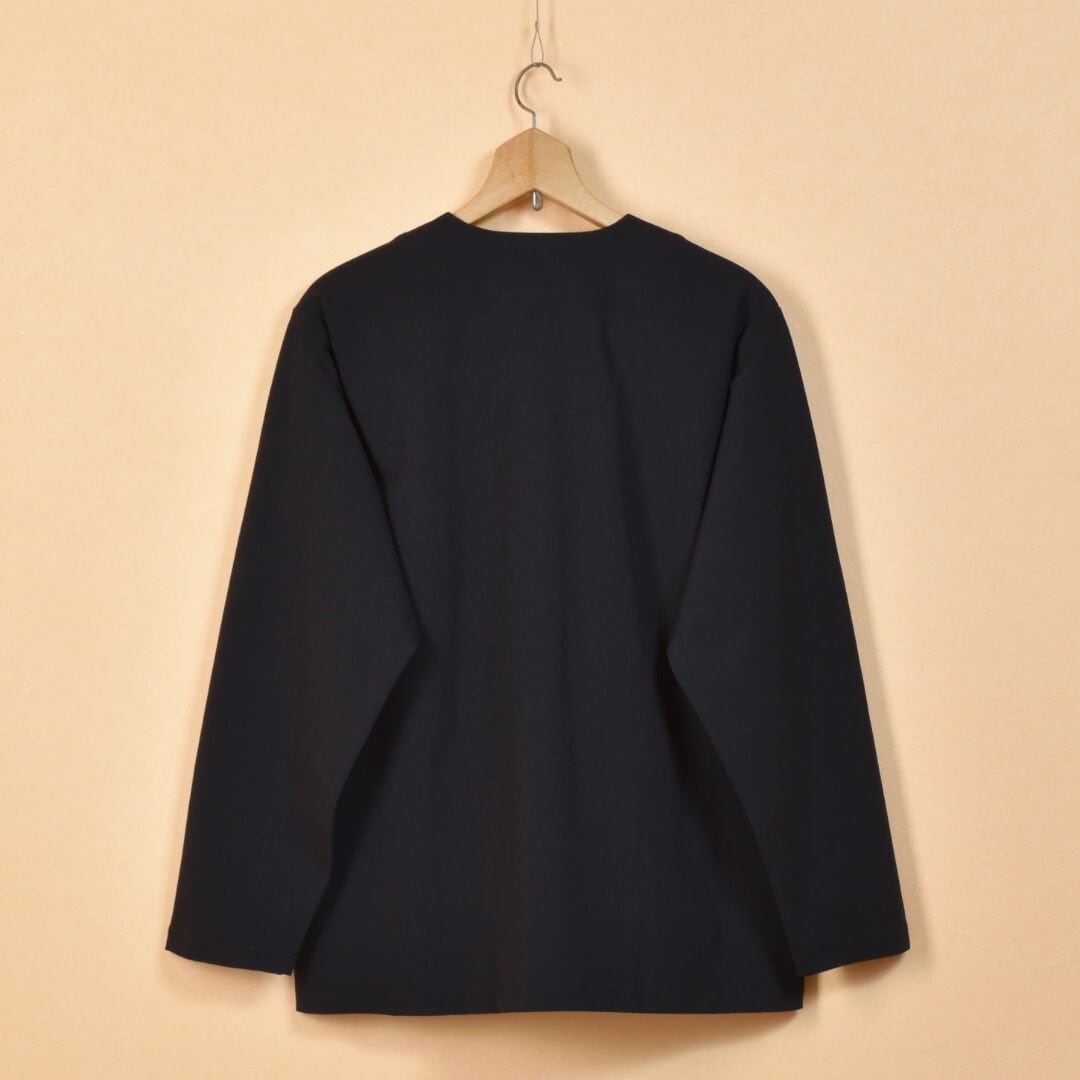 高いから良い、安いから悪いでなく、時代の流れにあった、最適なバランスを探求しています。ディテールとシルエットのデザイン性を兼ね備えることで生まれる「佇まい」を大事に、私達は「大人が楽しくなるシャツ」を創り続けていきます。また、ベーシックシャツはドレスシャツ専門の大阪の工場で裁断から縫製まで行っています。この工場では自動機等を使わず、熟練の職人が一枚一枚縫い上げています。表の美しさはもちろん、裏から見ても綺麗に見える様、アームホールと脇は折り伏せ始末、剣ボロ裏は生地端のボロが出ないよう工夫し、脇から袖下にかけては通常より2mmほど細い巻伏せ縫いで仕上げています。