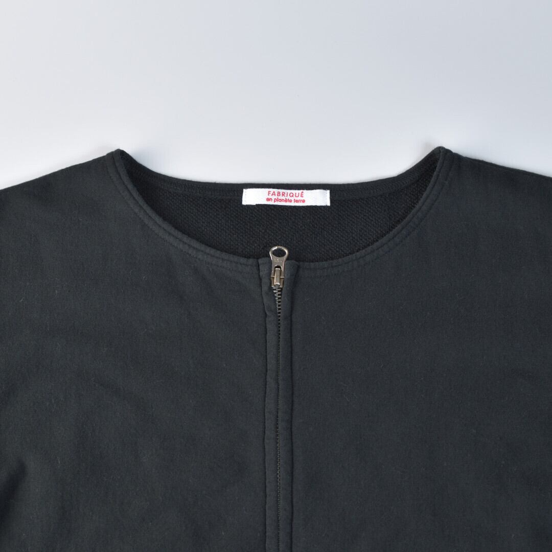 Fabrique en planete terre ファブリケアンプラネテール 裏毛ノーカラーブルゾン・ブラック 定番トレーナーで評判の良い裏毛を使った新型ブルゾンです