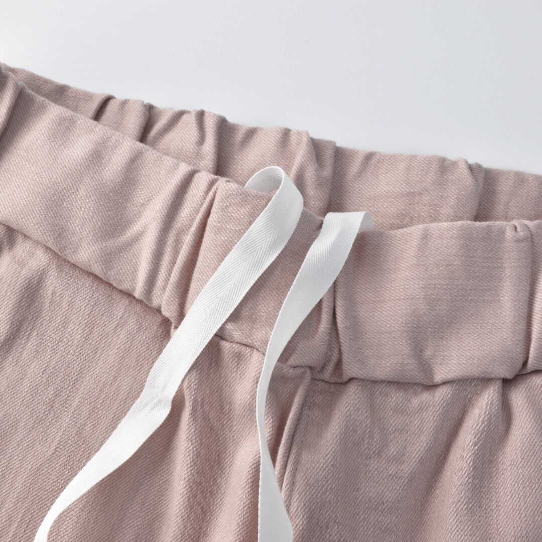 【商品詳細】シーズンを重ねてご好評いただいていますカットソー素材と布帛のコンビネーションストレッチパンツ。スタイリングしやすく履き心地の良いパンツです。ウエストにリブを使用しウエスト内側には調節用の紐もあります。お手入れもジーンズをお洗濯するようにご自宅で洗っていただけます。やわらかな穿き心地を実現するためにストレッチを利かせた丈夫なストレッチ生地です。