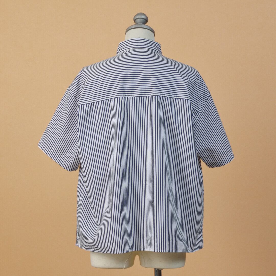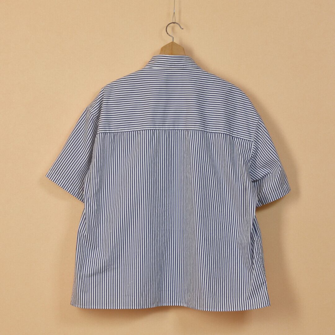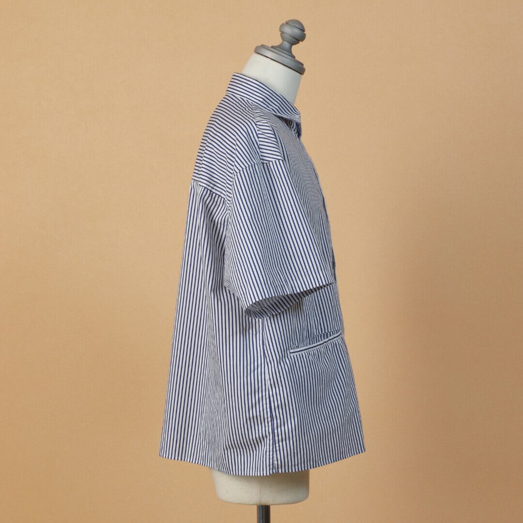 【MODEL】片玉ポケットストライプ半袖ビッグシャツ