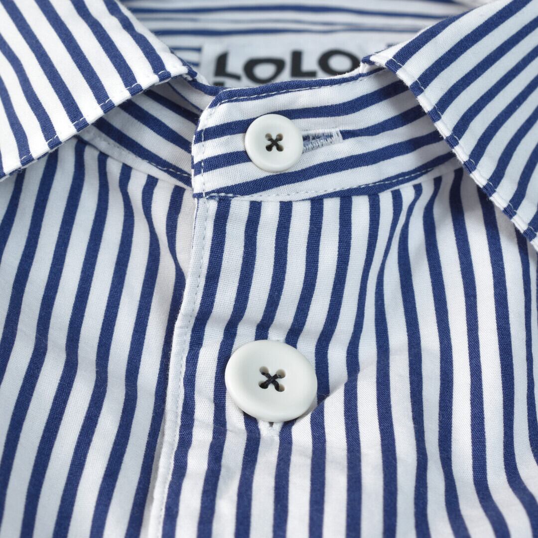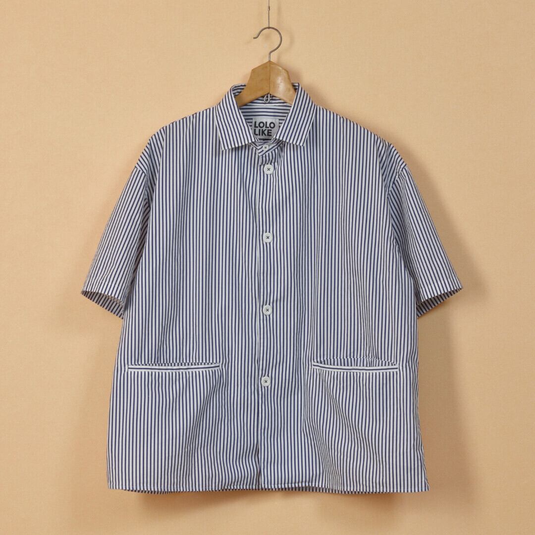 LOLO ロロ 片玉ポケットストライプ半袖ビッグシャツ・ネイビー 有ると嬉しいストライプシャツジャケット【送料無料】