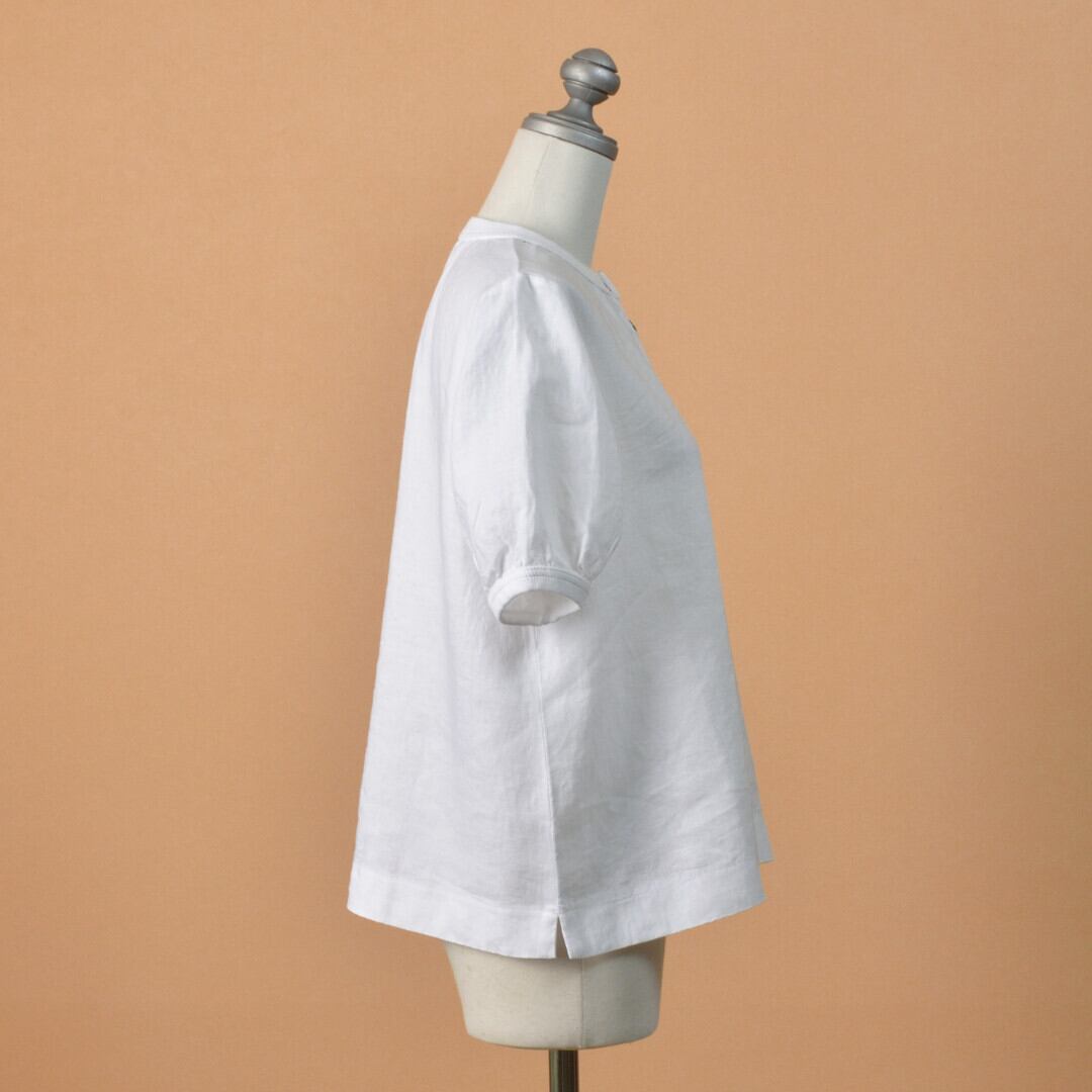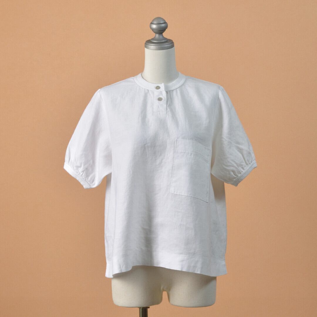 Fabrique en planete terre ファブリケアンプラネテール ダンガリーボタントップ・ホワイト Aラインシルエットのフンワリとしたプルオーバーです