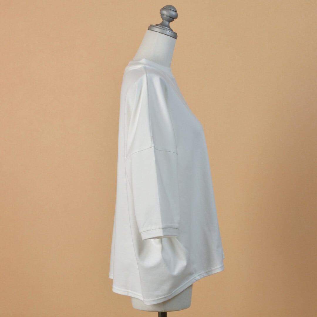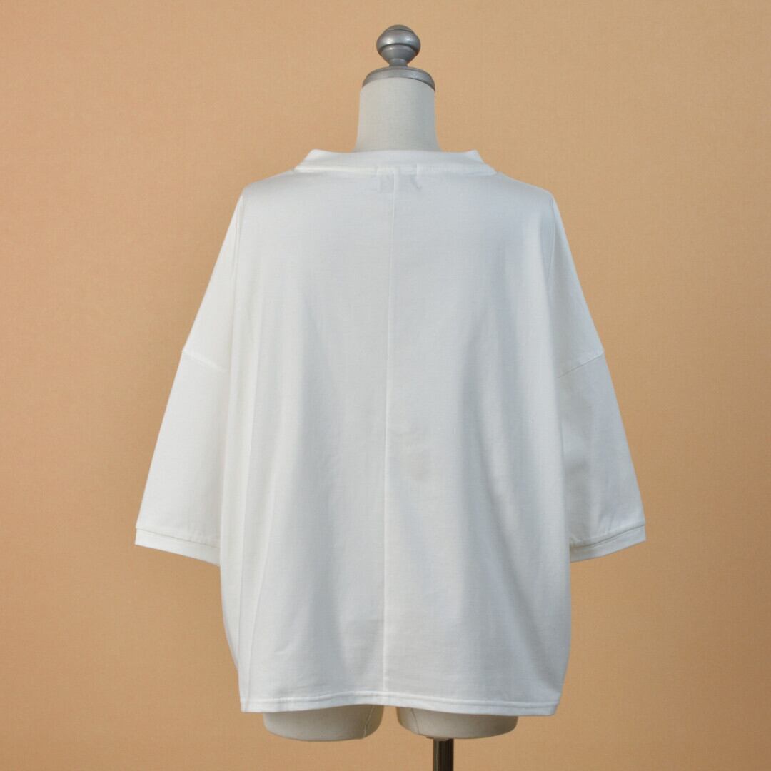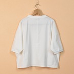 【商品詳細】sasanqua by trees サザンカバイツリーズ バスクシャツは、厳選されたインド産オーガニック綿を使用し、度詰めで編みたてられた一枚です。シルエットは身幅を大きく取ったドルマンシルエットが特徴で、着心地の良さとスタイリッシュさを兼ね備えています。シンプルなデザインながらも、カジュアルからきれいめまで幅広いスタイリングに合わせやすいアイテムです。