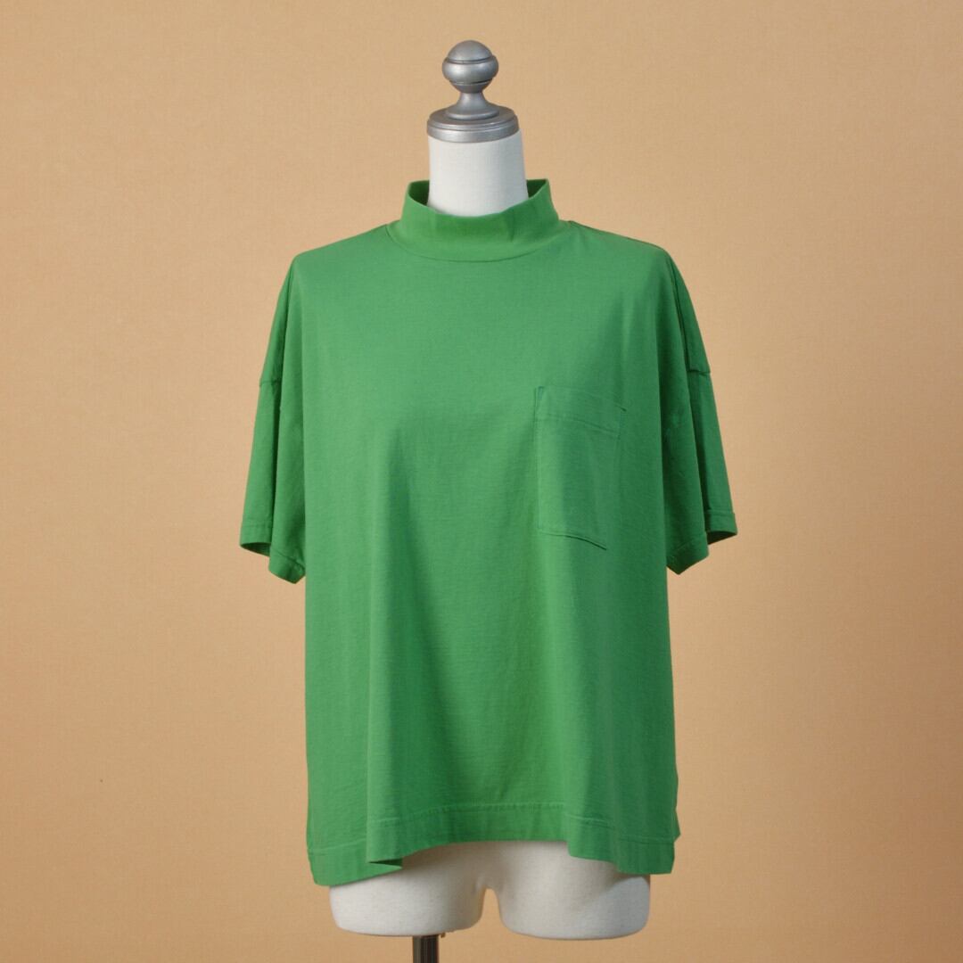 Fabrique en planete terre ファブリケアンプラネテール モックワイドショートスリーブ・グリーン 大好きなモックネック、フワッとしたAラインも良いですね【送料150円~】