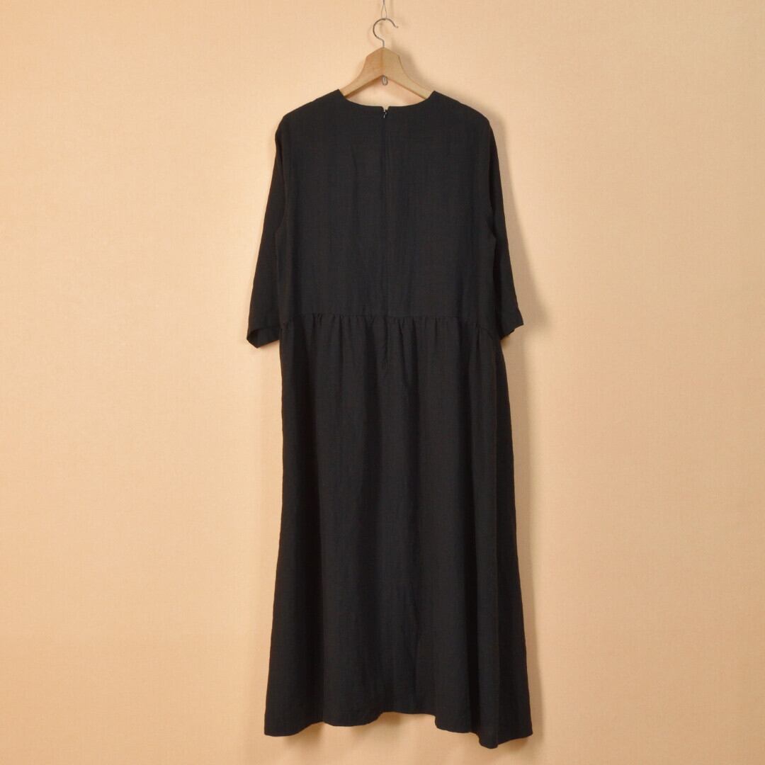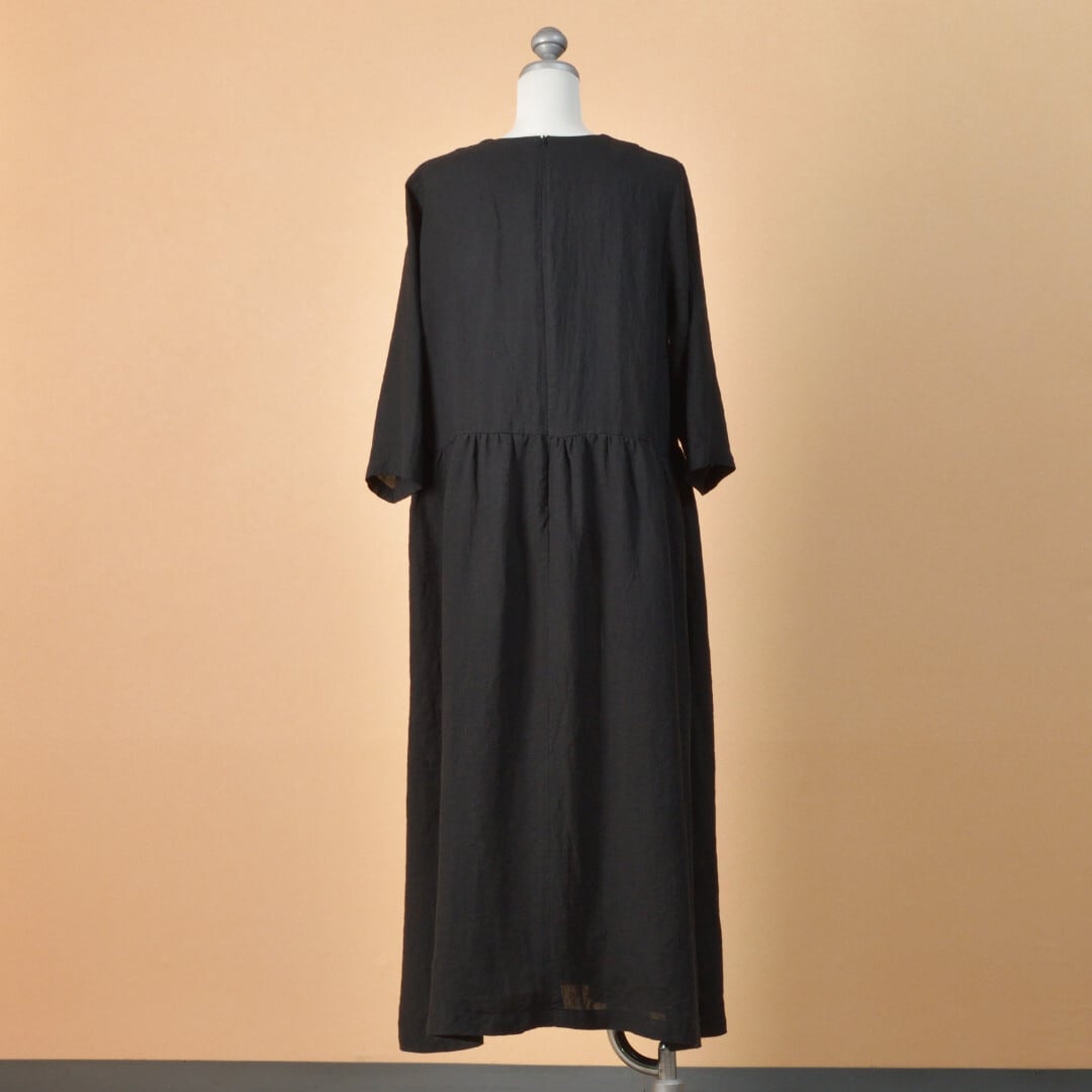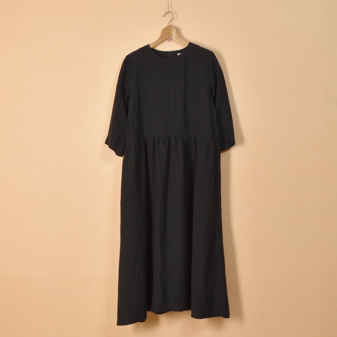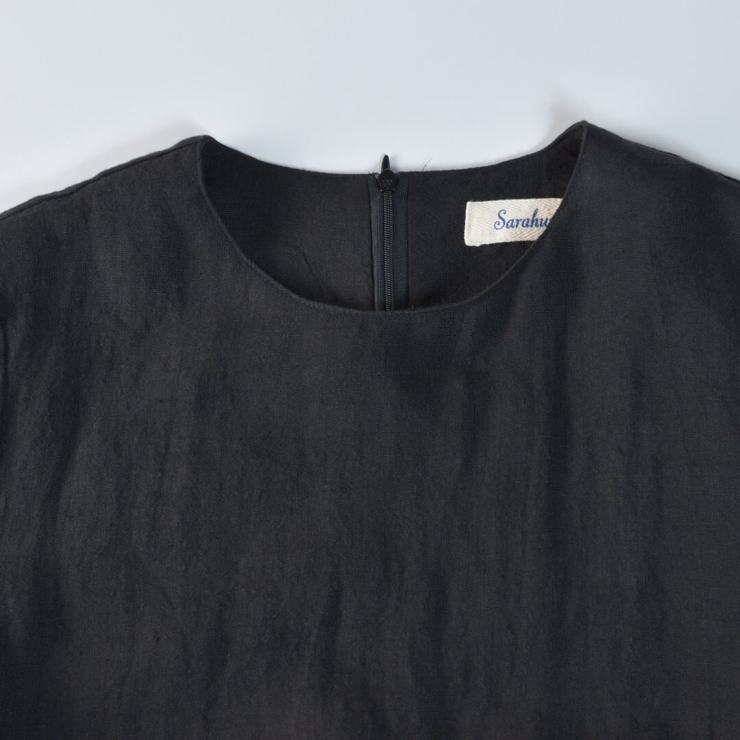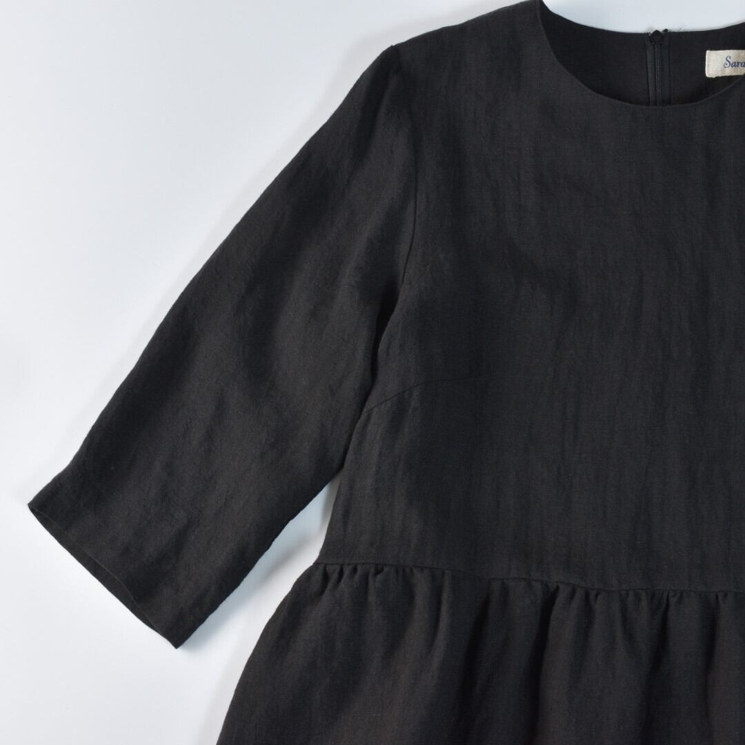 Sarahwear サラウエア ベルギーリネン切替ギャザーワンピース・ブラック 質の良いリネンを使ったスッキリとしたワンピースです【送料無料】