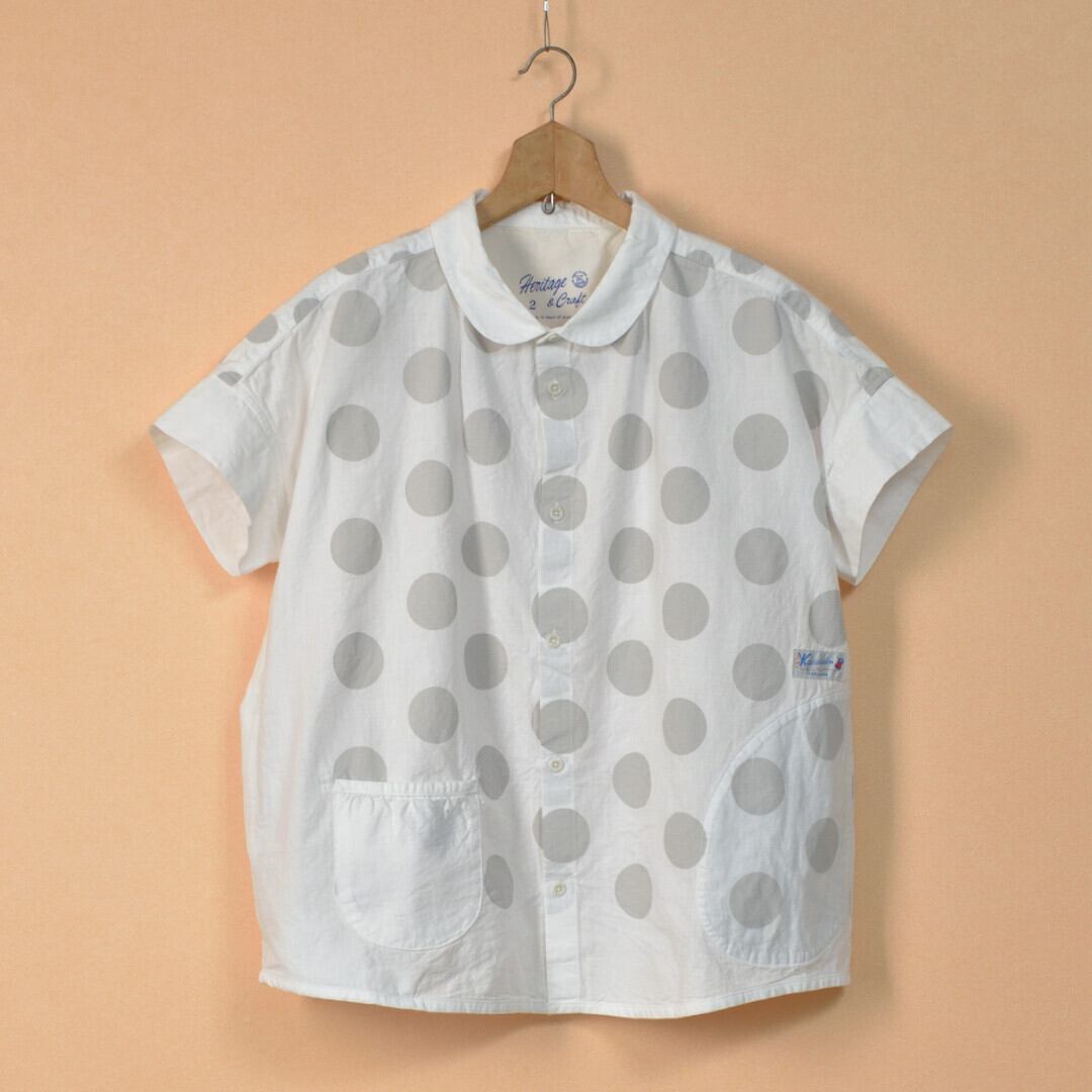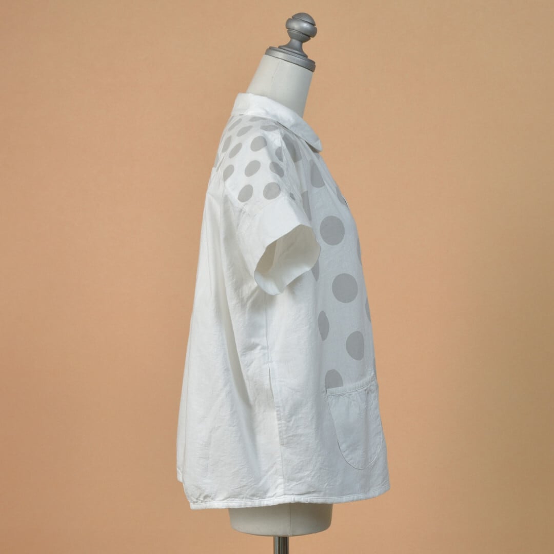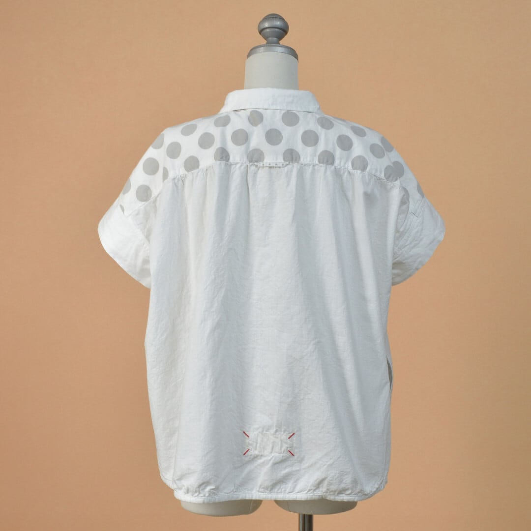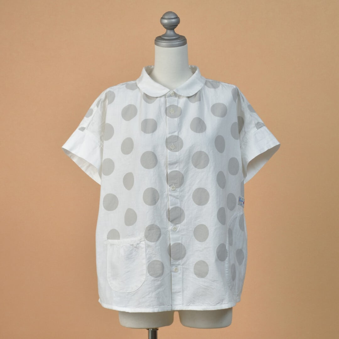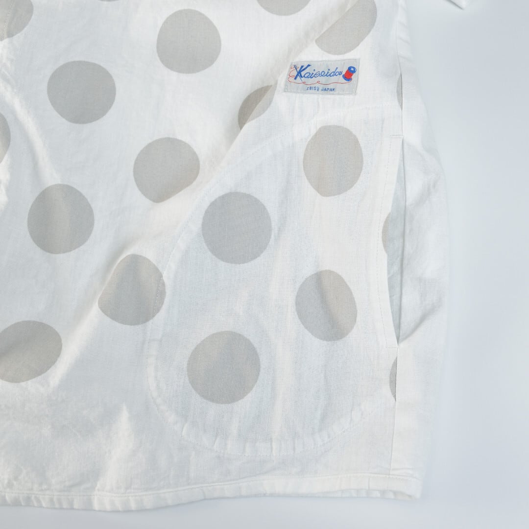快晴堂 カイセイドウ 水玉ダンガリー 丸衿半袖シャツ・ホワイト ドットの大きさを変えて切替えたアイテムです。【送料無料】