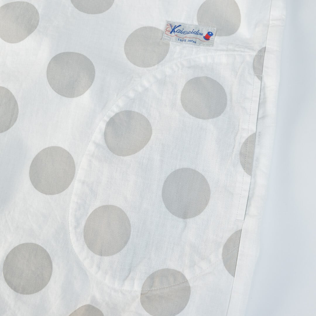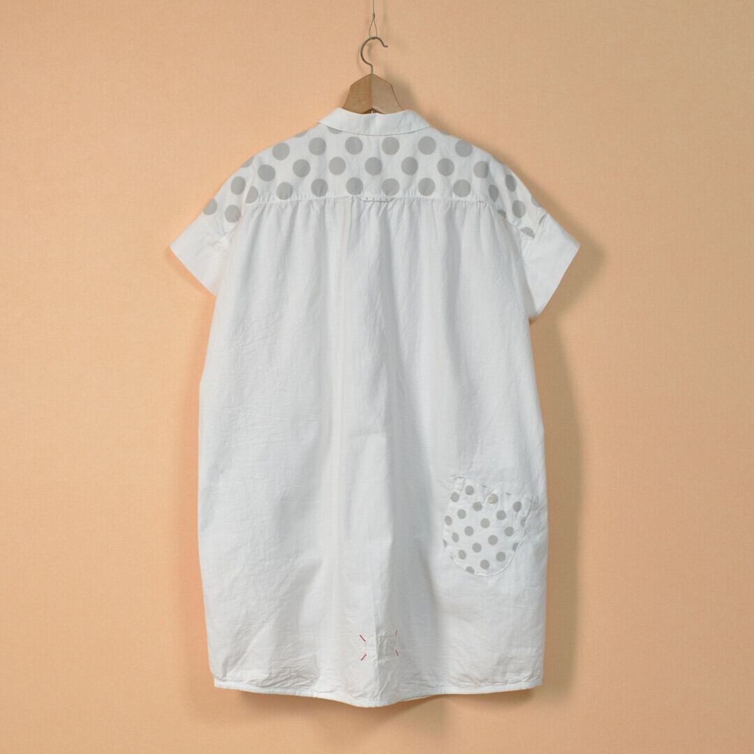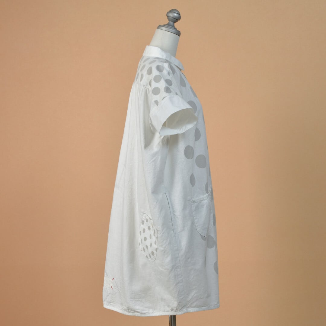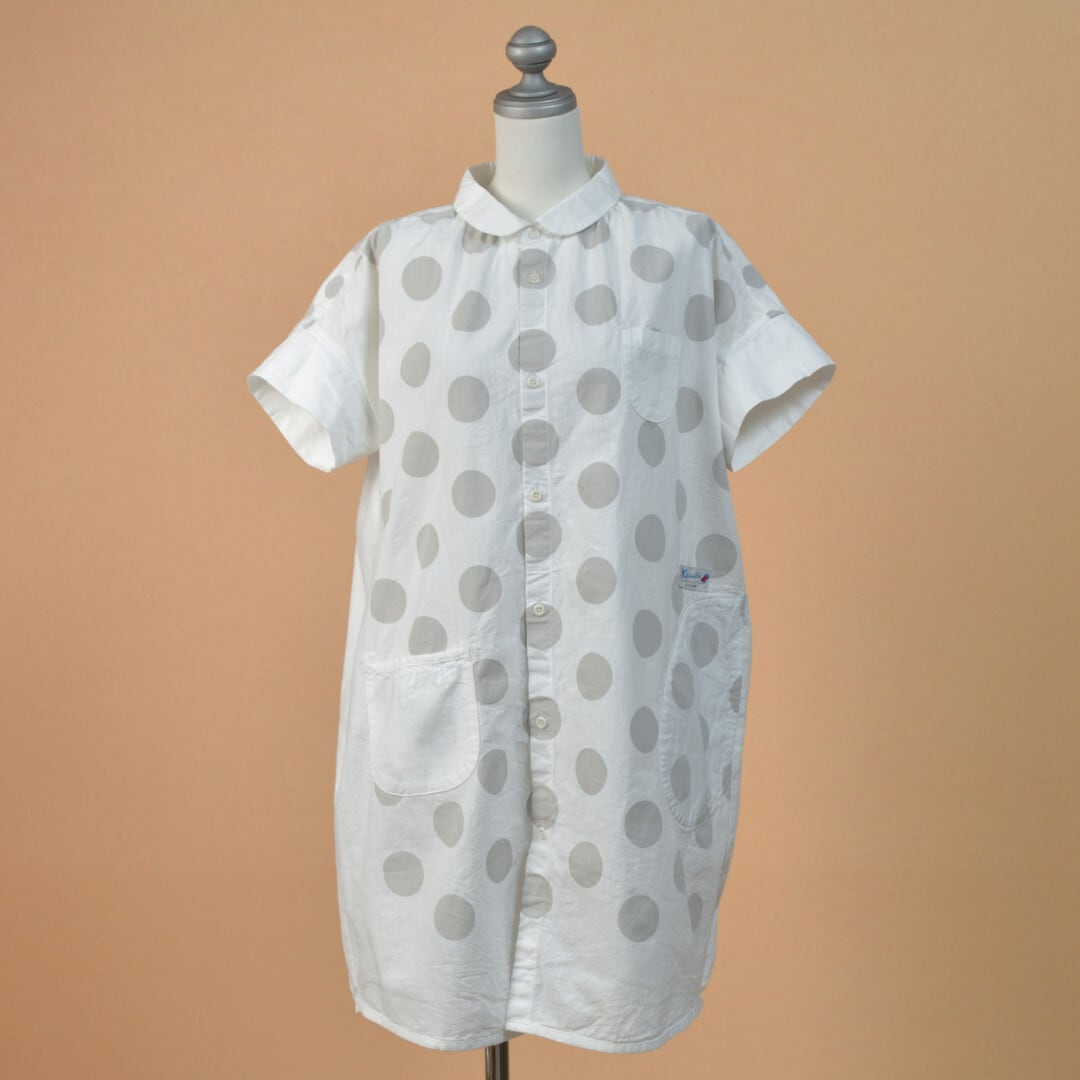 快晴堂 カイセイドウ 水玉ダンガリー 丸衿フレンチスリーブチュニック・ホワイト ドットの大きさを変えて切替えたアイテムです。【送料無料】