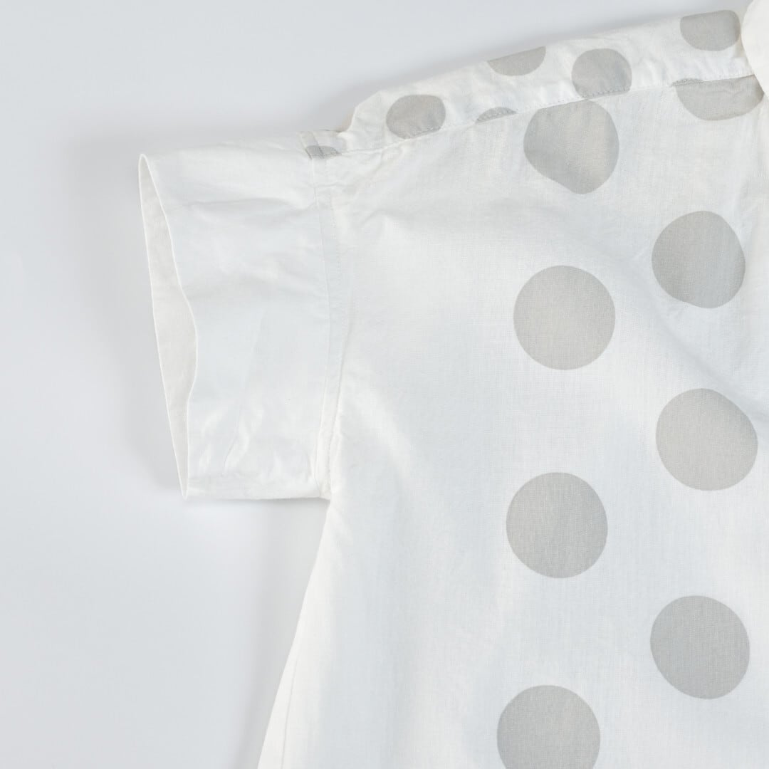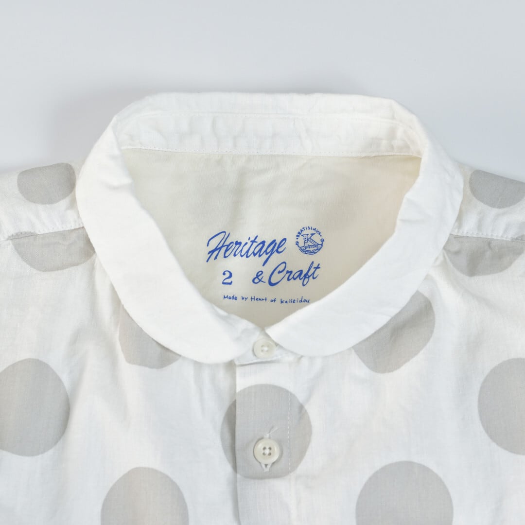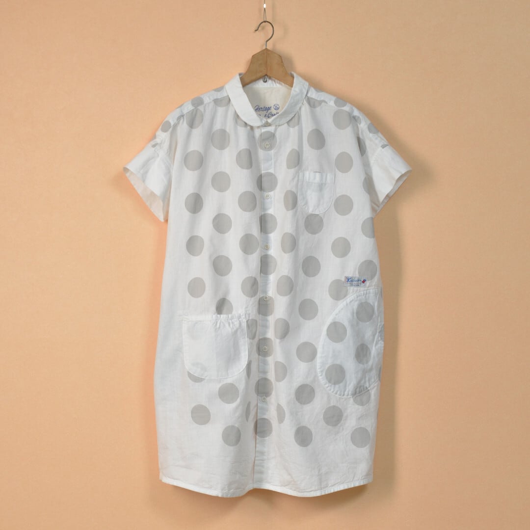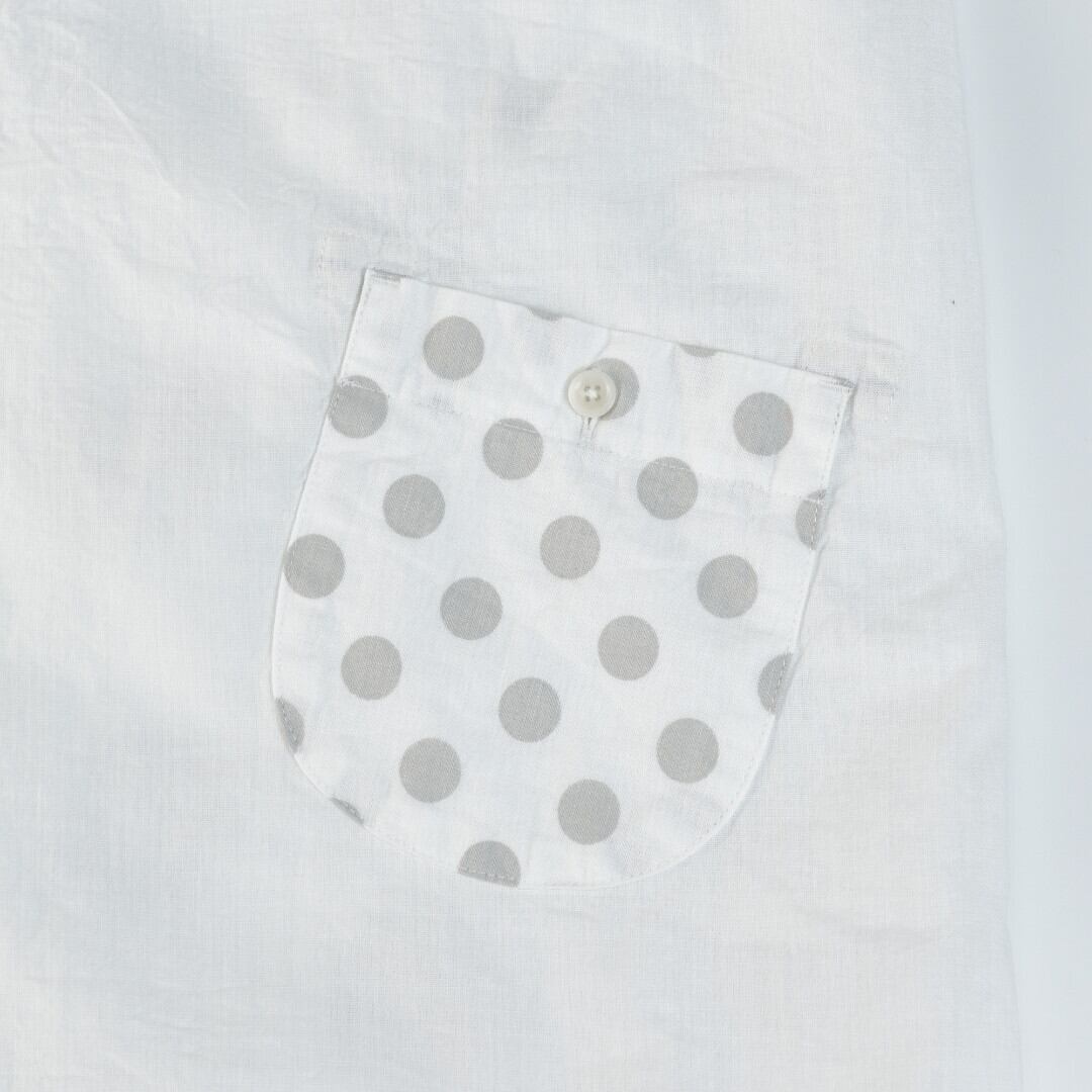 快晴堂 カイセイドウ 水玉ダンガリー 丸衿フレンチスリーブチュニック・ホワイト ドットの大きさを変えて切替えたアイテムです。【送料無料】