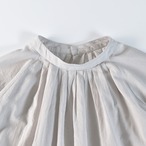【商品詳細】薄く透け感のあるコットンの生地をたっぷりと使用しました。ギャザーやタックを施したデザインで、夏の装いに軽やかに華を添えます。軽くふわりとした生地は、やわらかな風をはらんでしなやかに揺らぎます。華やかなデザインながら清楚さのある衿元や袖のドレープが上品な印象を与えてくれます。レギンスやパンツなど、すっきりとしたシルエットのボトムとのコーディネートもおすすめです。