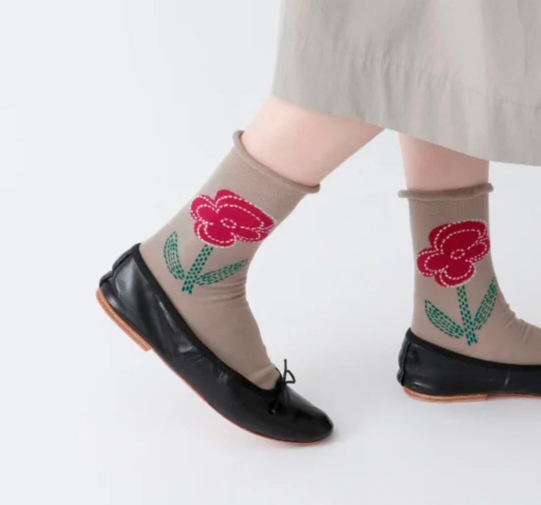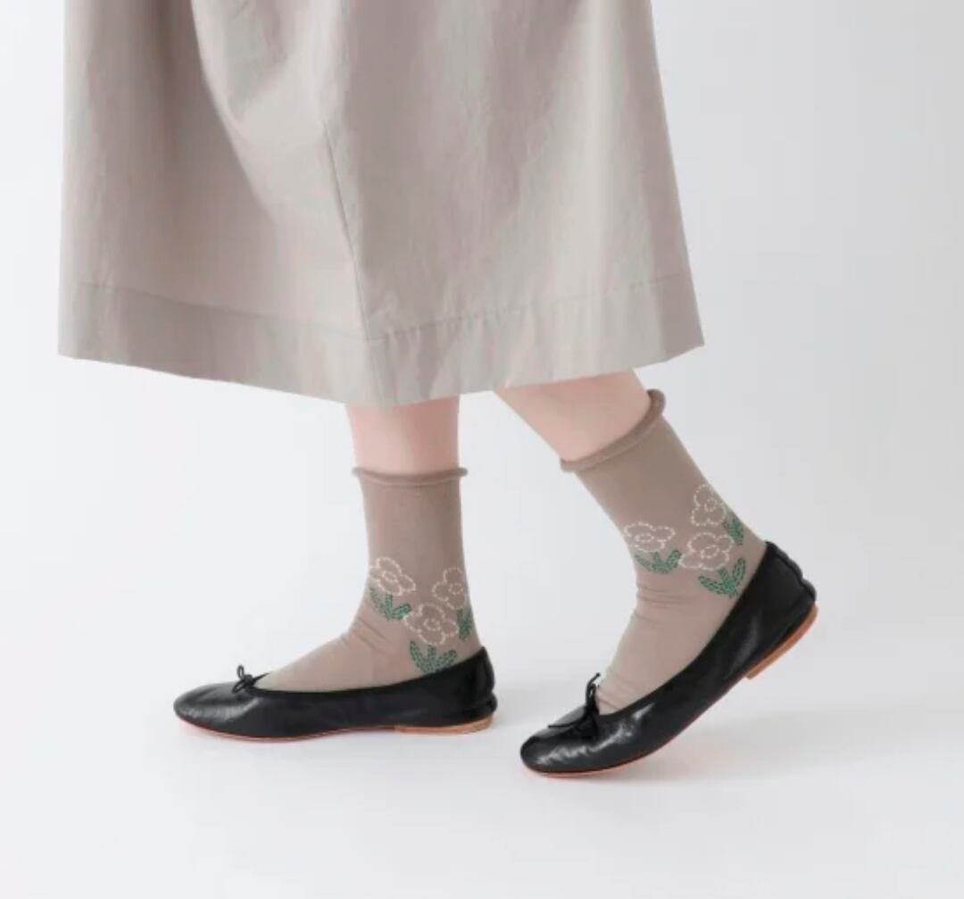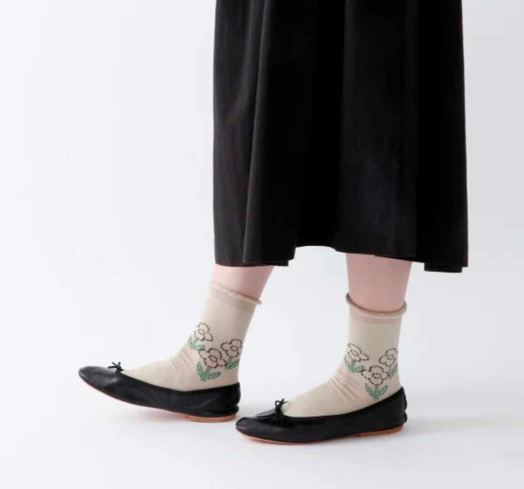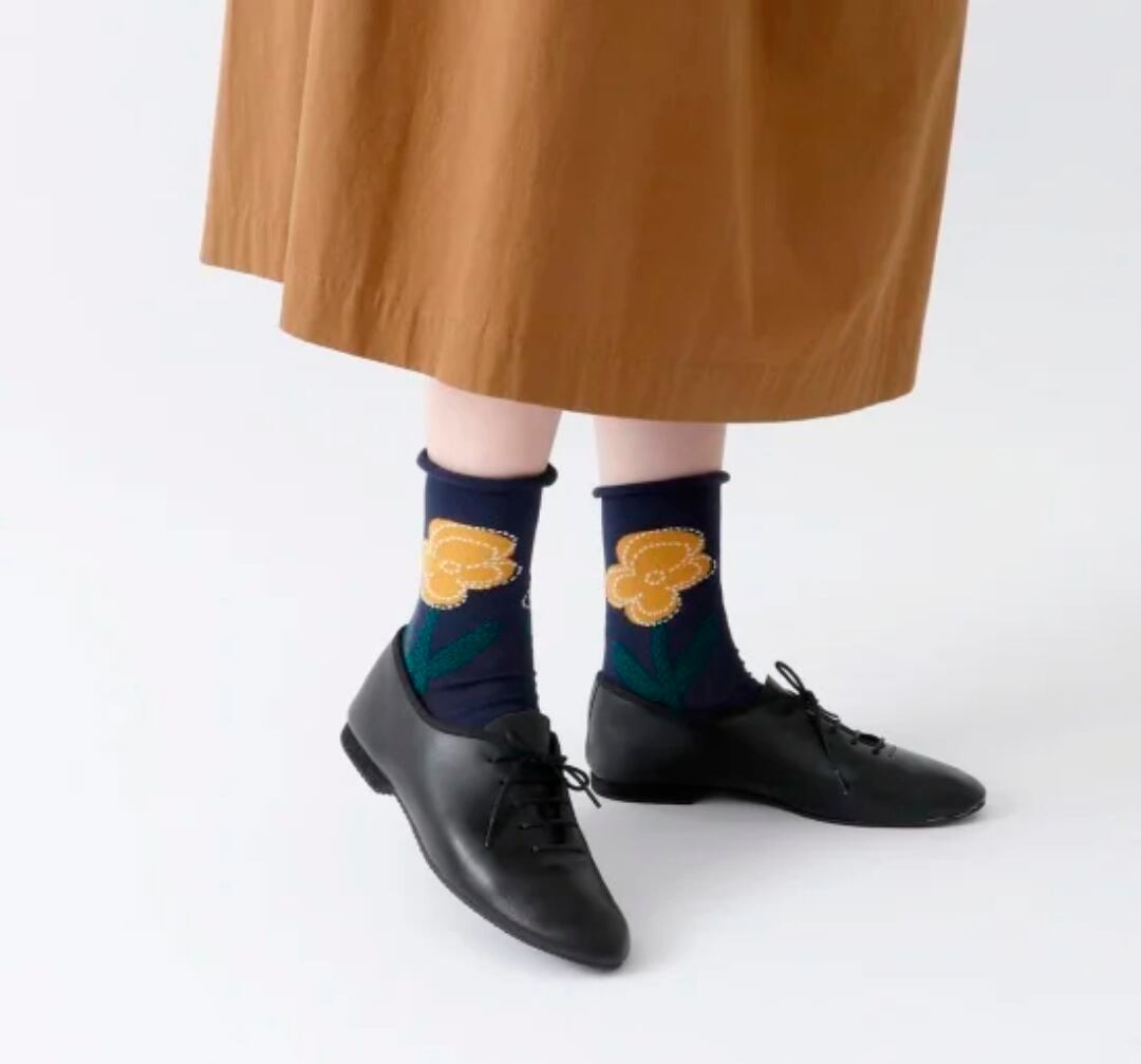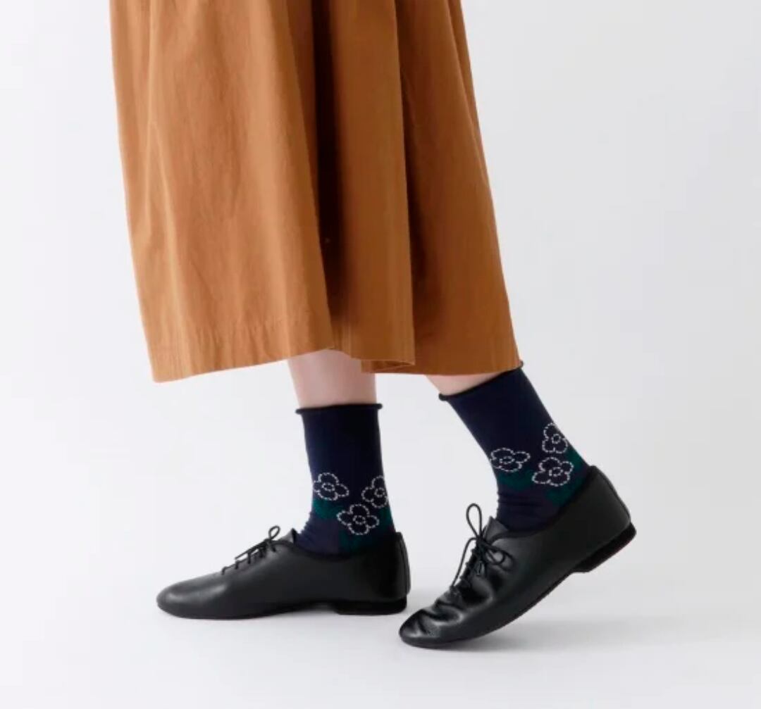 FrenchBull フレンチブル ビオラソックス 左右違う表現のお花柄が、コーディネートのアクセントに【送料150円~】