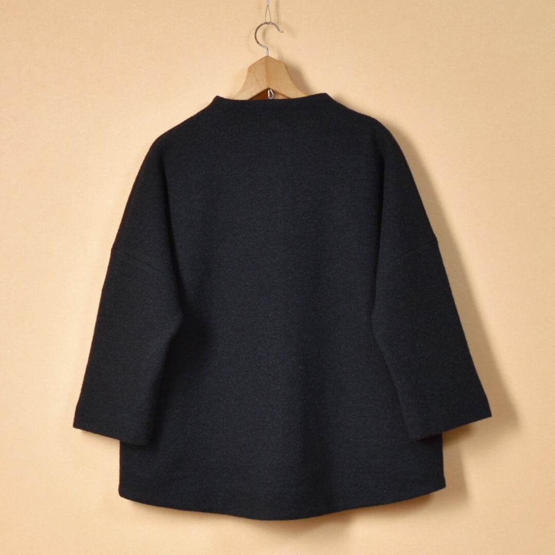 【商品詳細】柔らかなウール糸を使い、圧縮して仕上げられたしっかりとした生地のショートコートです。ゆったりとしたシルエットが特徴で、快適な着心地を提供します。少し立ち上がったネックラインが上品さを演出し、カジュアルからフォーマルまで幅広いシーンで活躍するアイテムです!