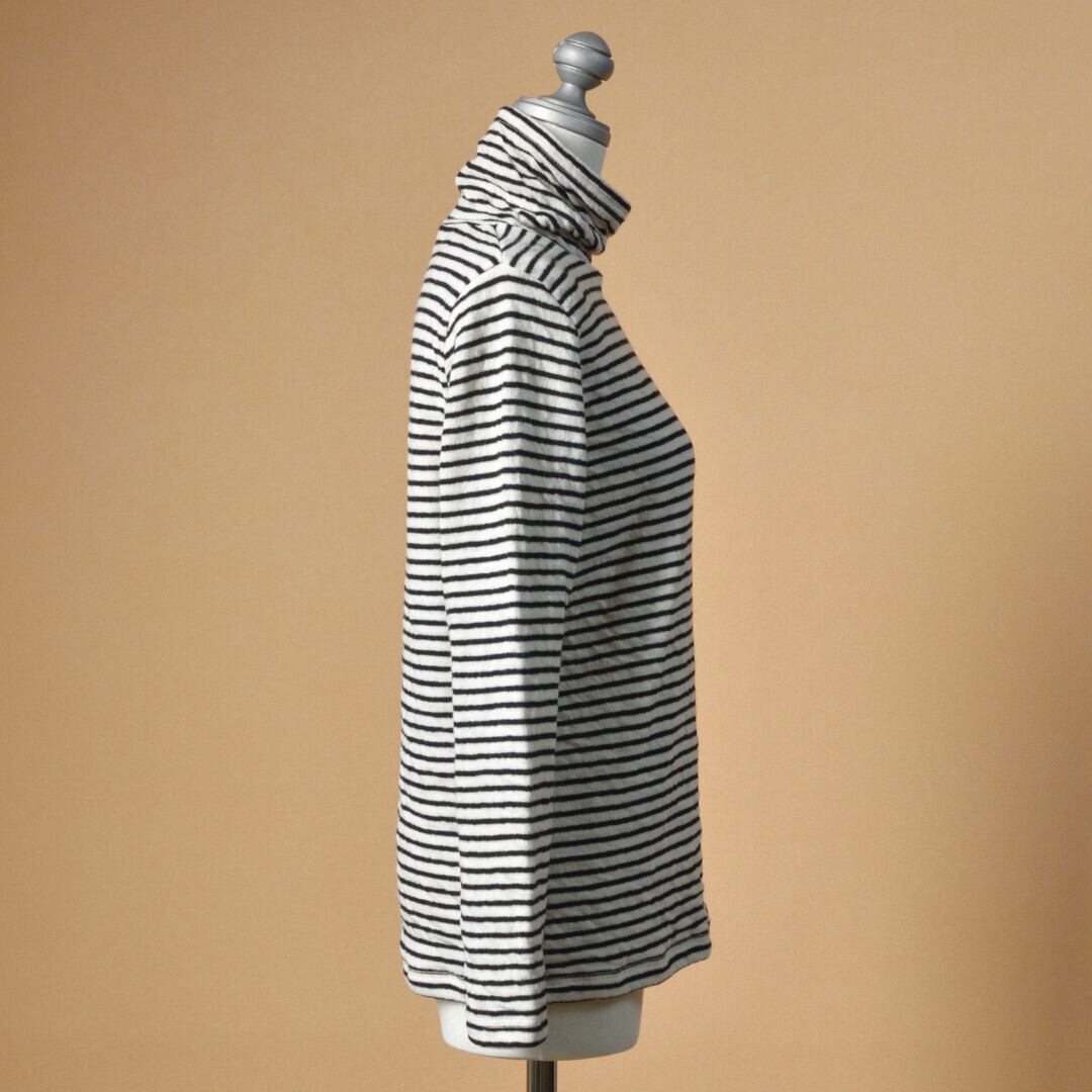 prit プリット ウール綿接結ボーダー タートルネックプルオーバー ・シロxクロ 暖かくて肌触りの良い生地を使っています。