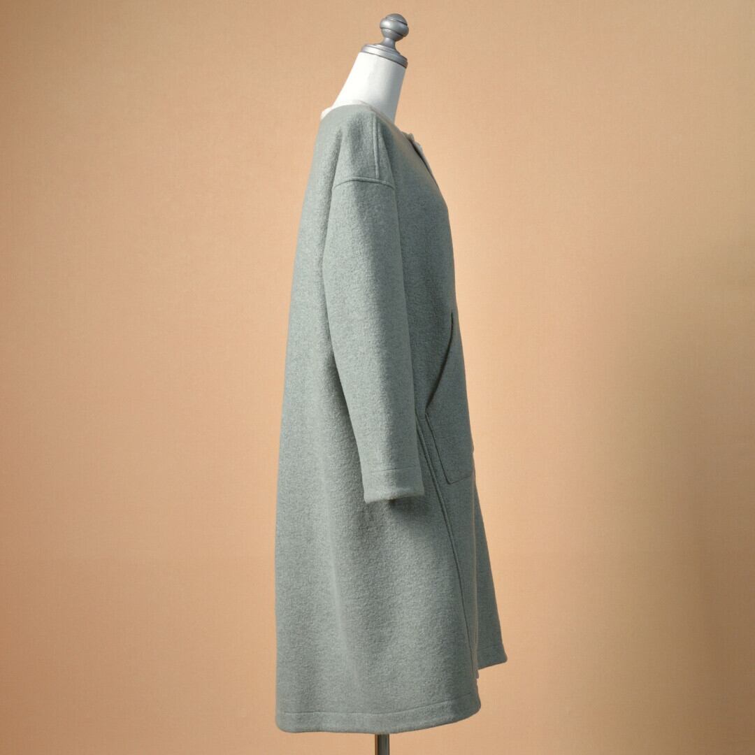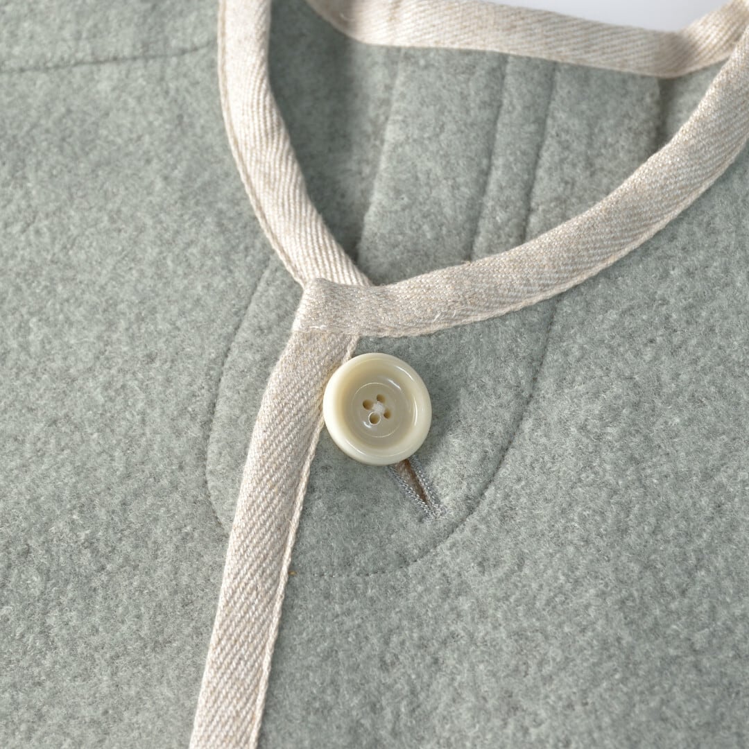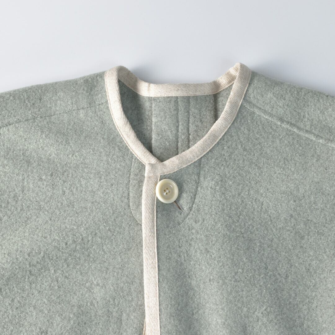 快晴堂 カイセイドウ Girl's リングウール・ノーカラーイージーコート・薄グリーン ワンボタンの軽くふわりと羽織っていただけるコートです