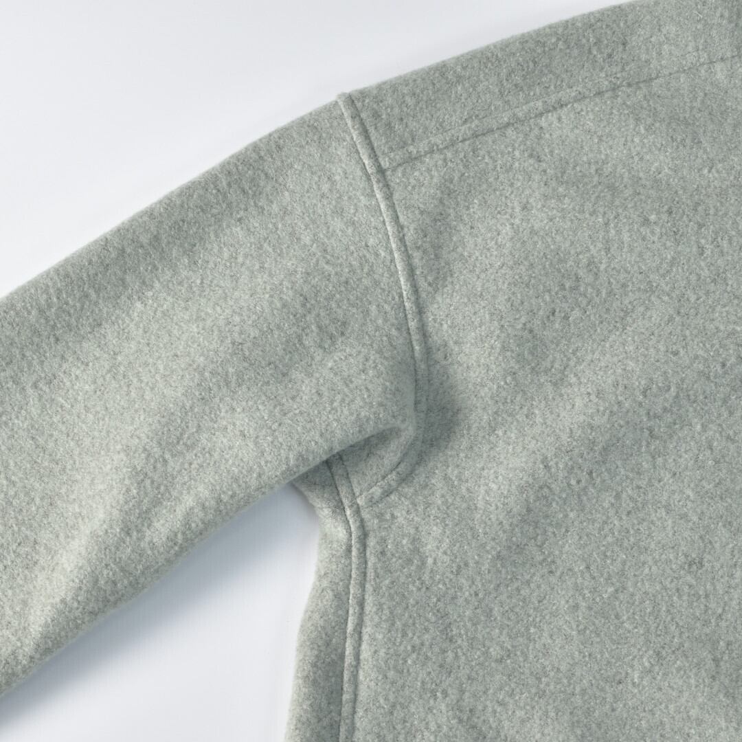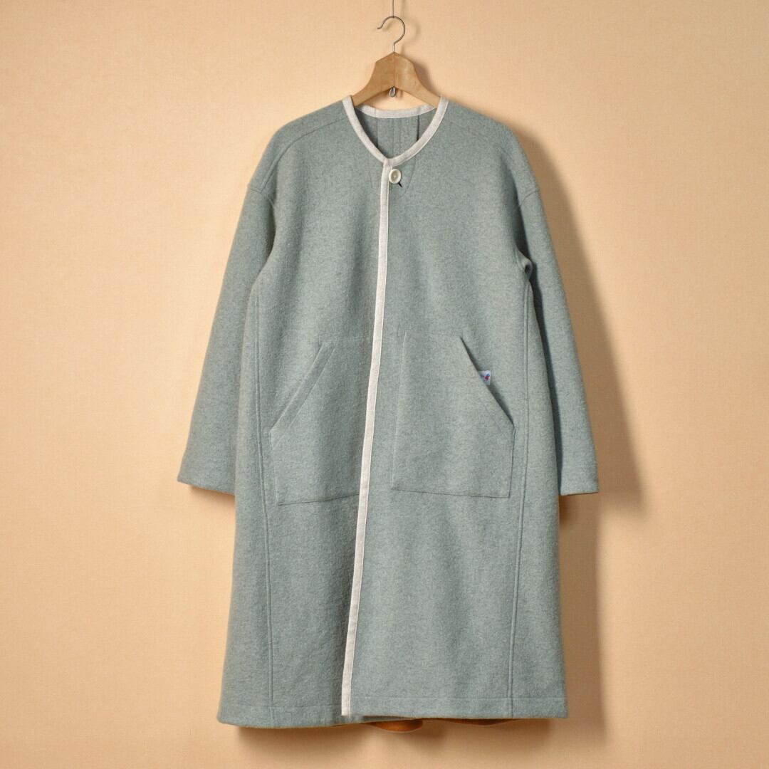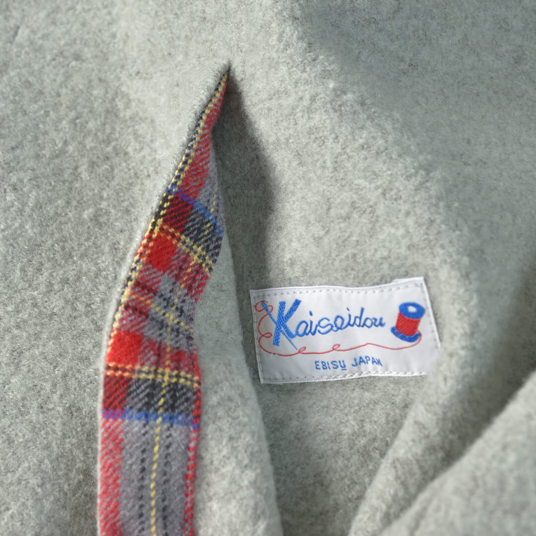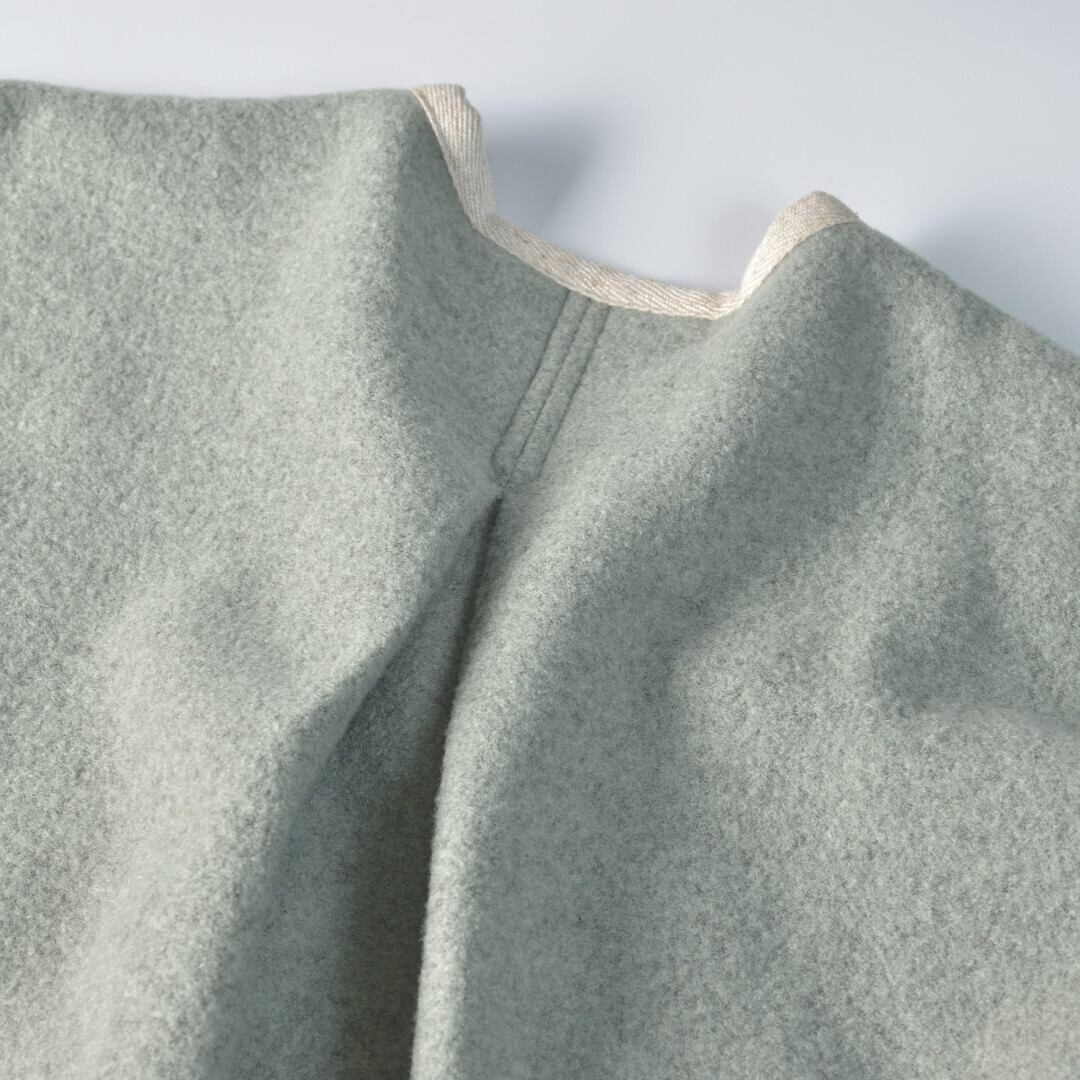 【商品詳細】カットソーで使うリングウールに圧縮をかけたふわりとした柔らかい生地を使っています。重たいコートとは違ってブランケットを羽織るように気軽に着て頂けるコートです。快晴堂らしく随所に独自のデザインが施されているのもいつも通りです。