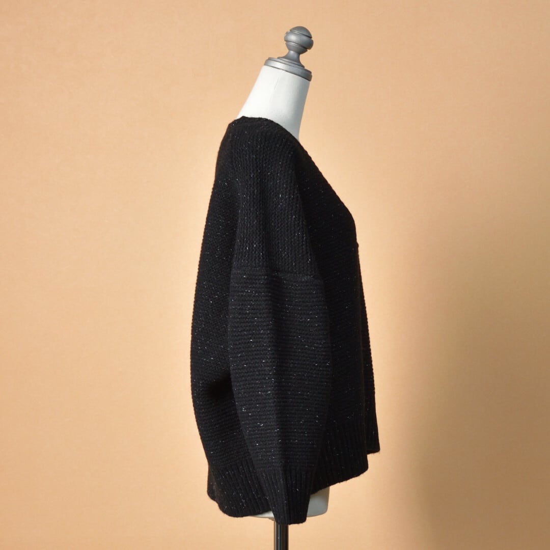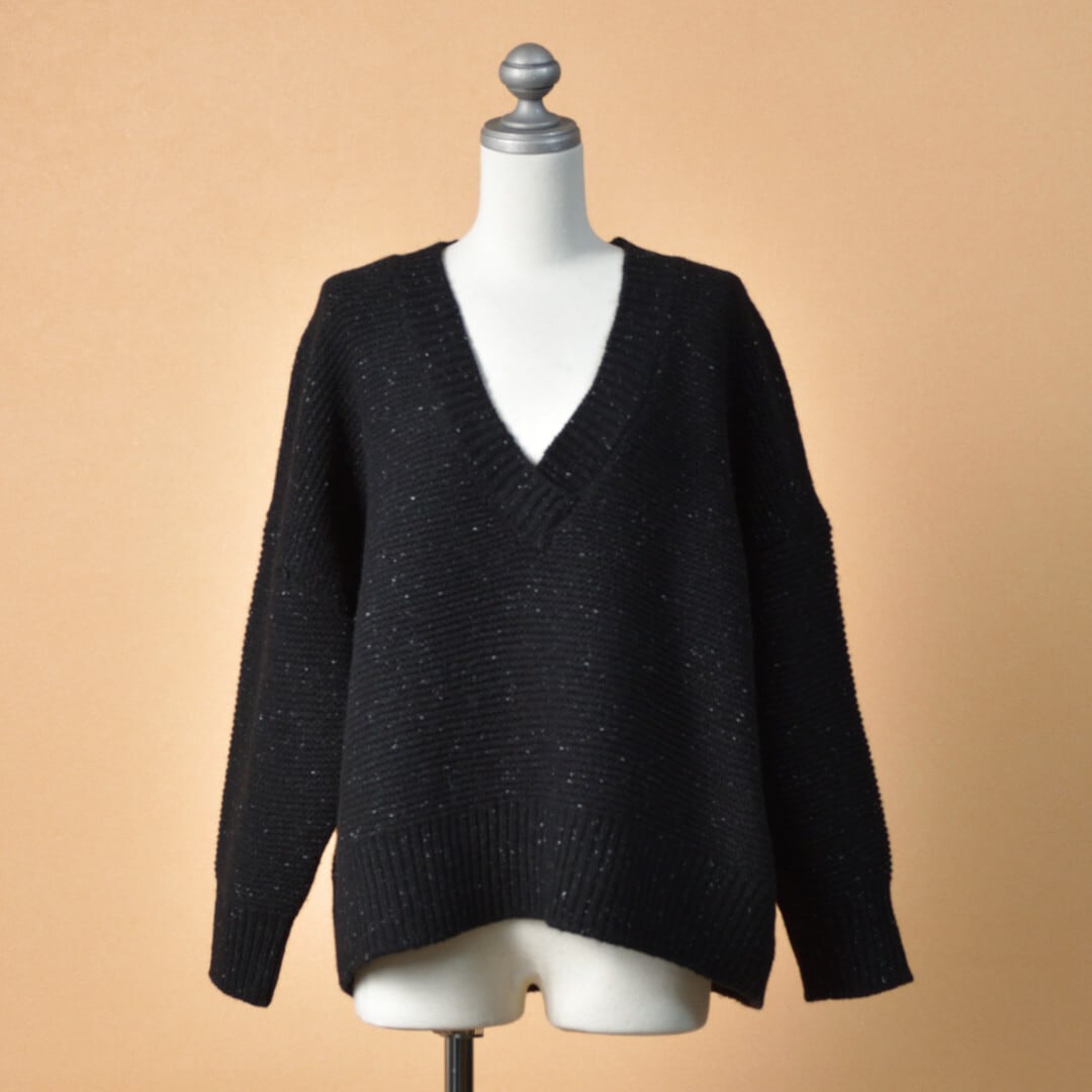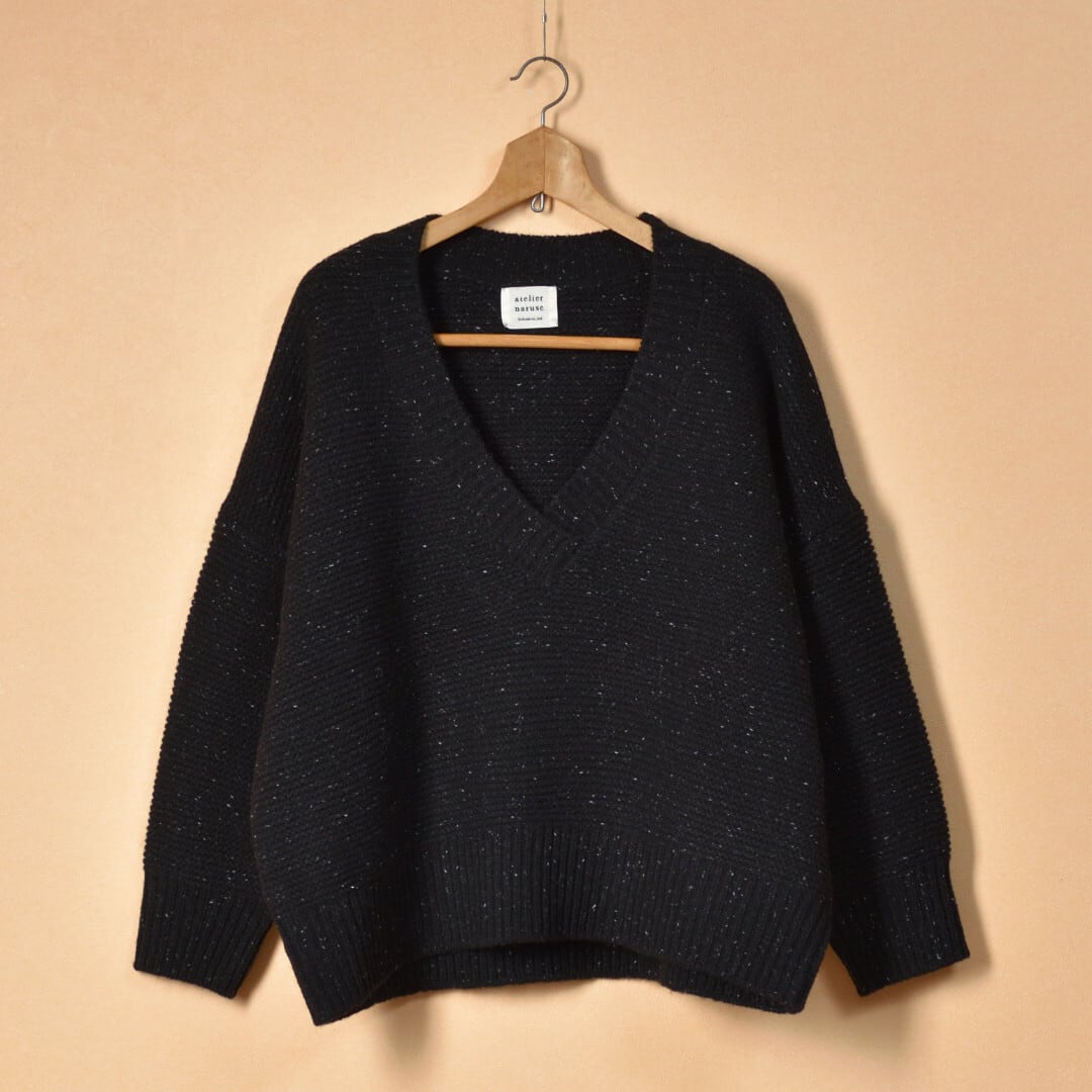 atelier naruse アトリエナルセ ウールVネックニット・ブラック レトロなデザインを現代的にアレンジしたニット【送料無料】
