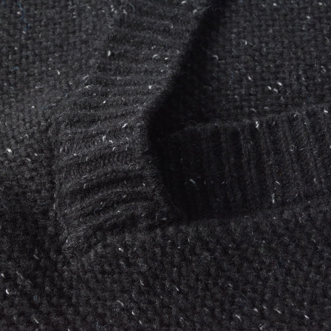 ・ローゲージのガーター編みにすることで、ふんわりとした糸の特徴が活かしたバルキーで手編み感のある編地に仕上げています