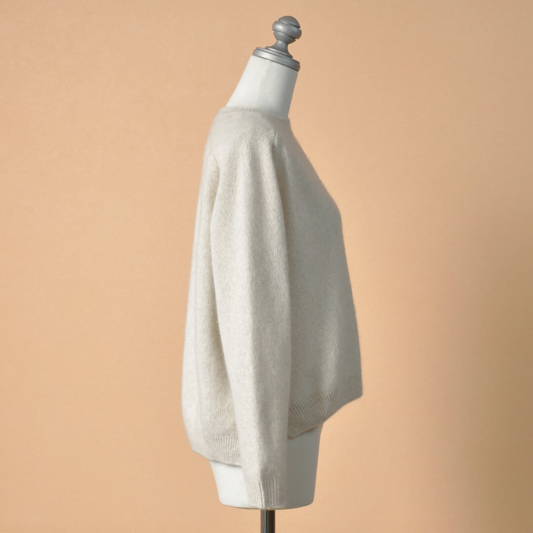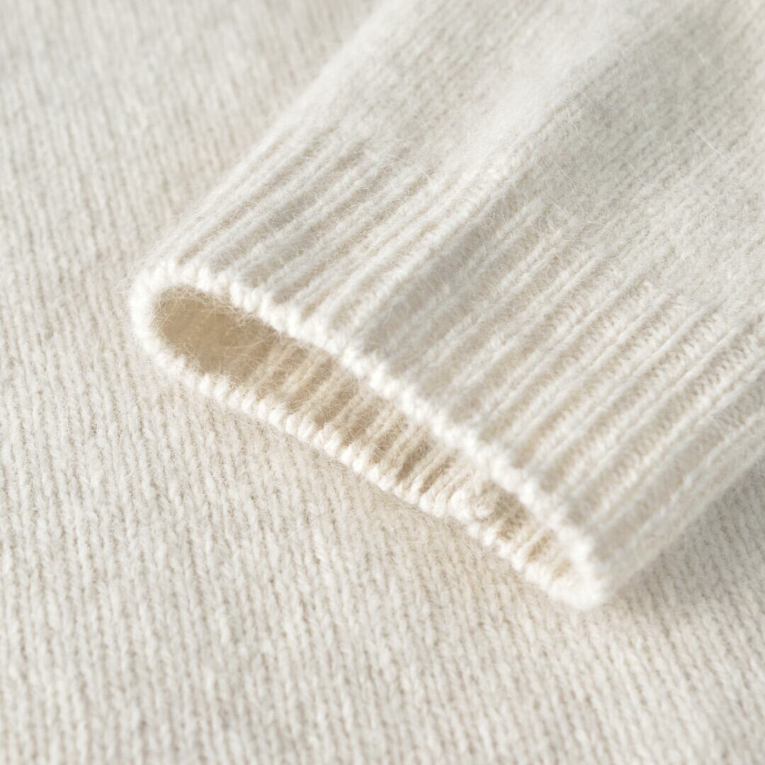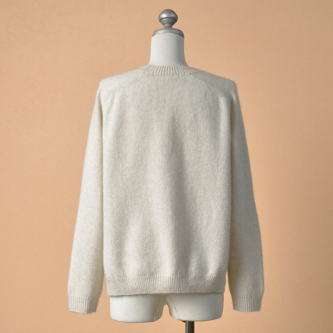 【商品詳細】弾力のあるメリノウールと、ふんわりとした毛がしなやかでやさしい肌当たりのブルーフォックスをブレンドした素材。数色の綿を混ぜ合わせて染色をしているため、ナチュラルで味わい深い色合いに。ふわりと軽やかな着心地ながら嵩高く、カシミヤやウールと並ぶほどの保温性をもちます。クルーネックのプルオーバーは首回りの開きすぎないデザインが優しい印象です。